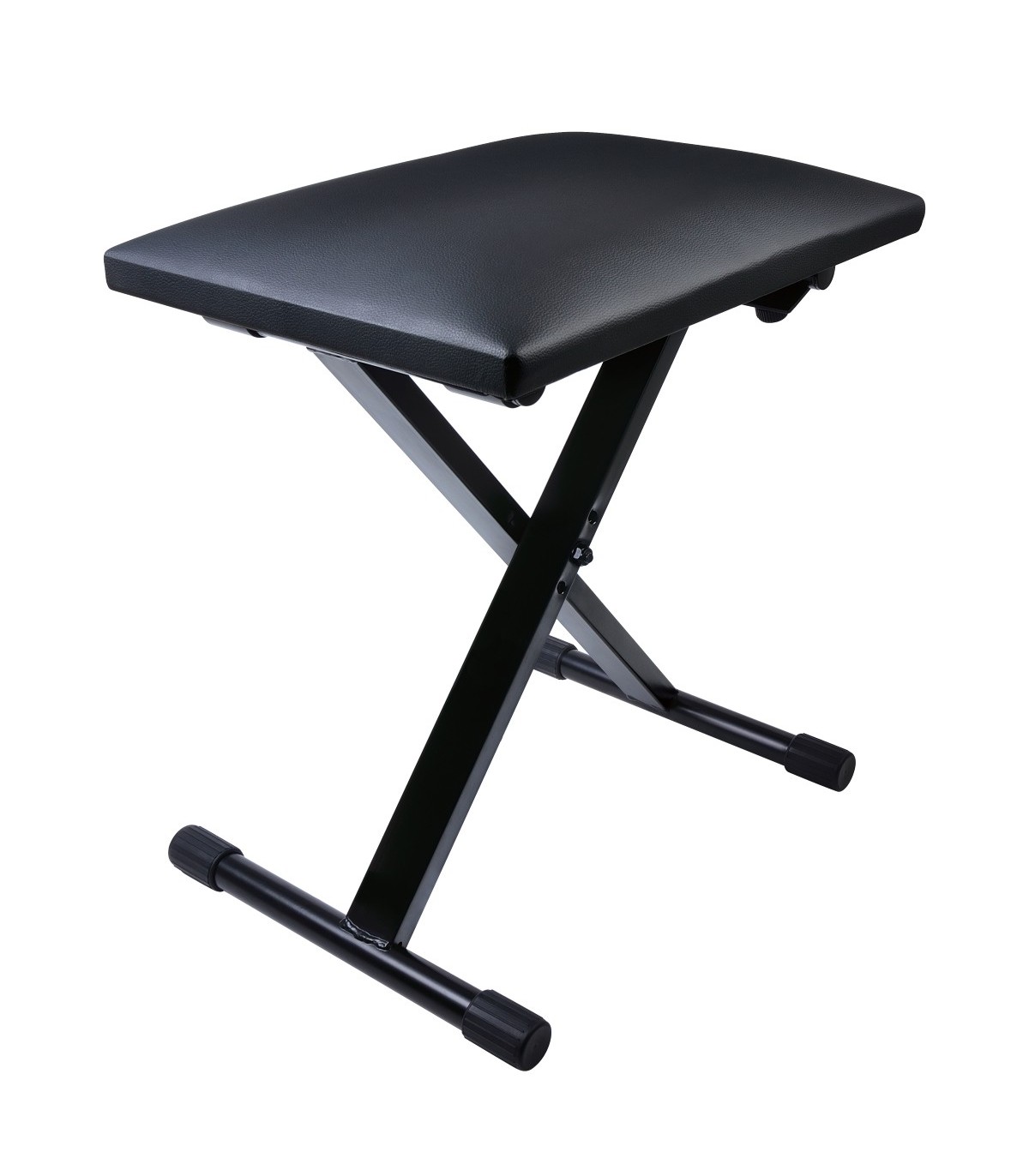 Panchetta regolabile in metallo con seduta in sky nero. Leggera, stabile, perfetta per pianoforte e tastiera.