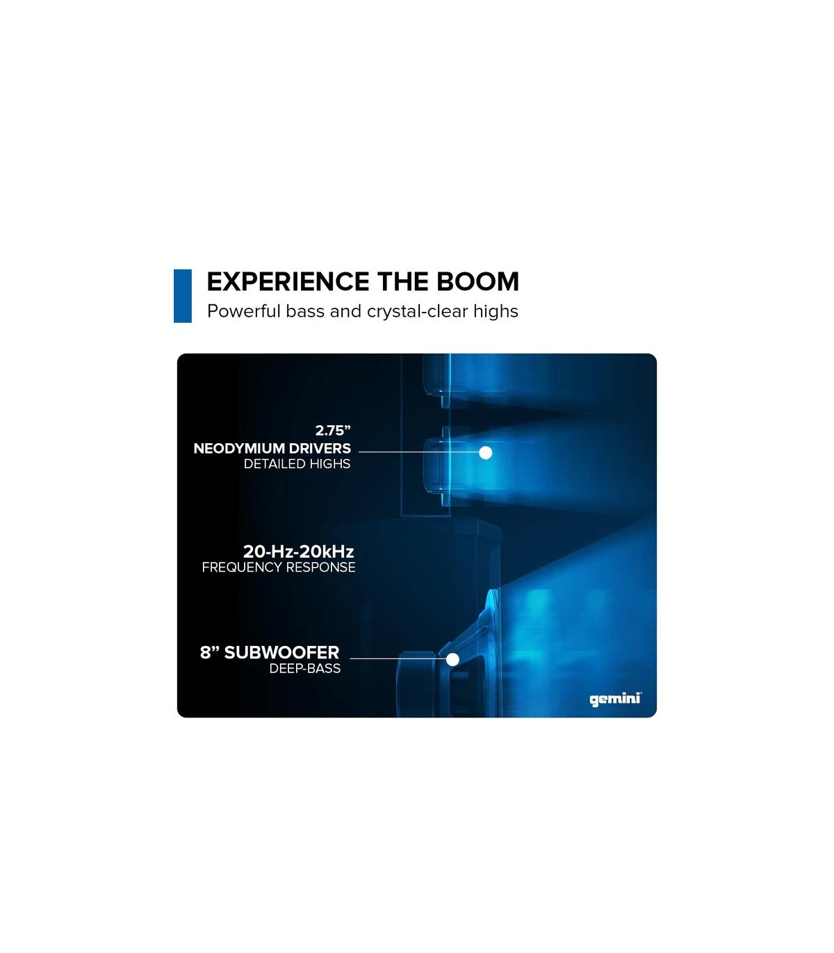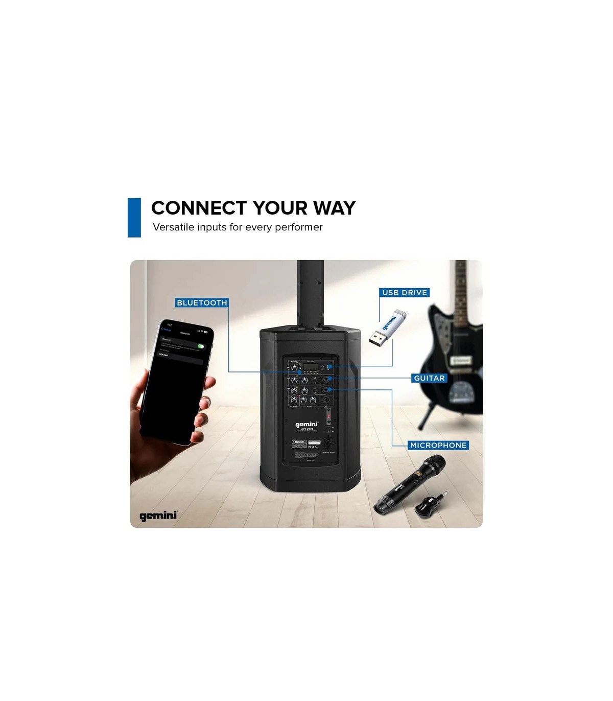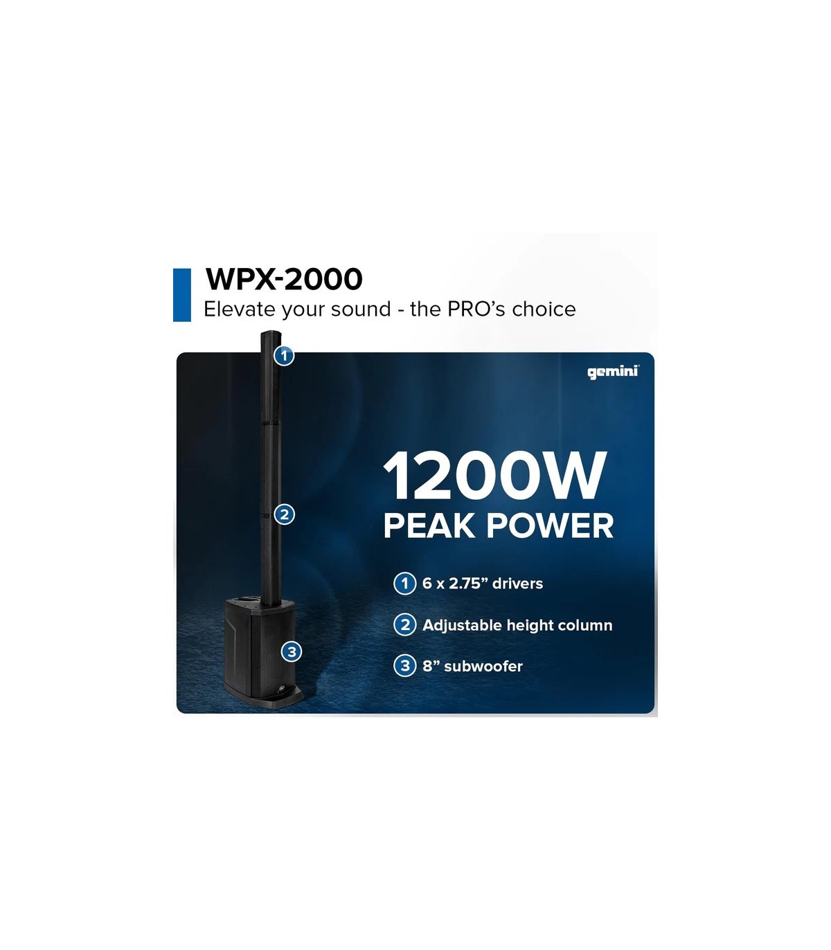 sistema a colonna 2 vie amplificato composto da 6 tweeter in neodimio da 2.75" montati a colonna e 1 subwoofer con driver da 8"