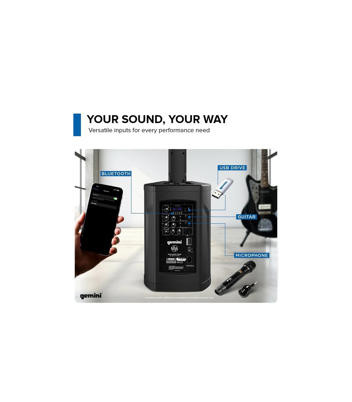 – mixer interno a 3 canali con 2 ingressi linea e 2 ingressi microfonici tutti con regolazione del reverb e ingresso combo XLR-Jack 1/4"