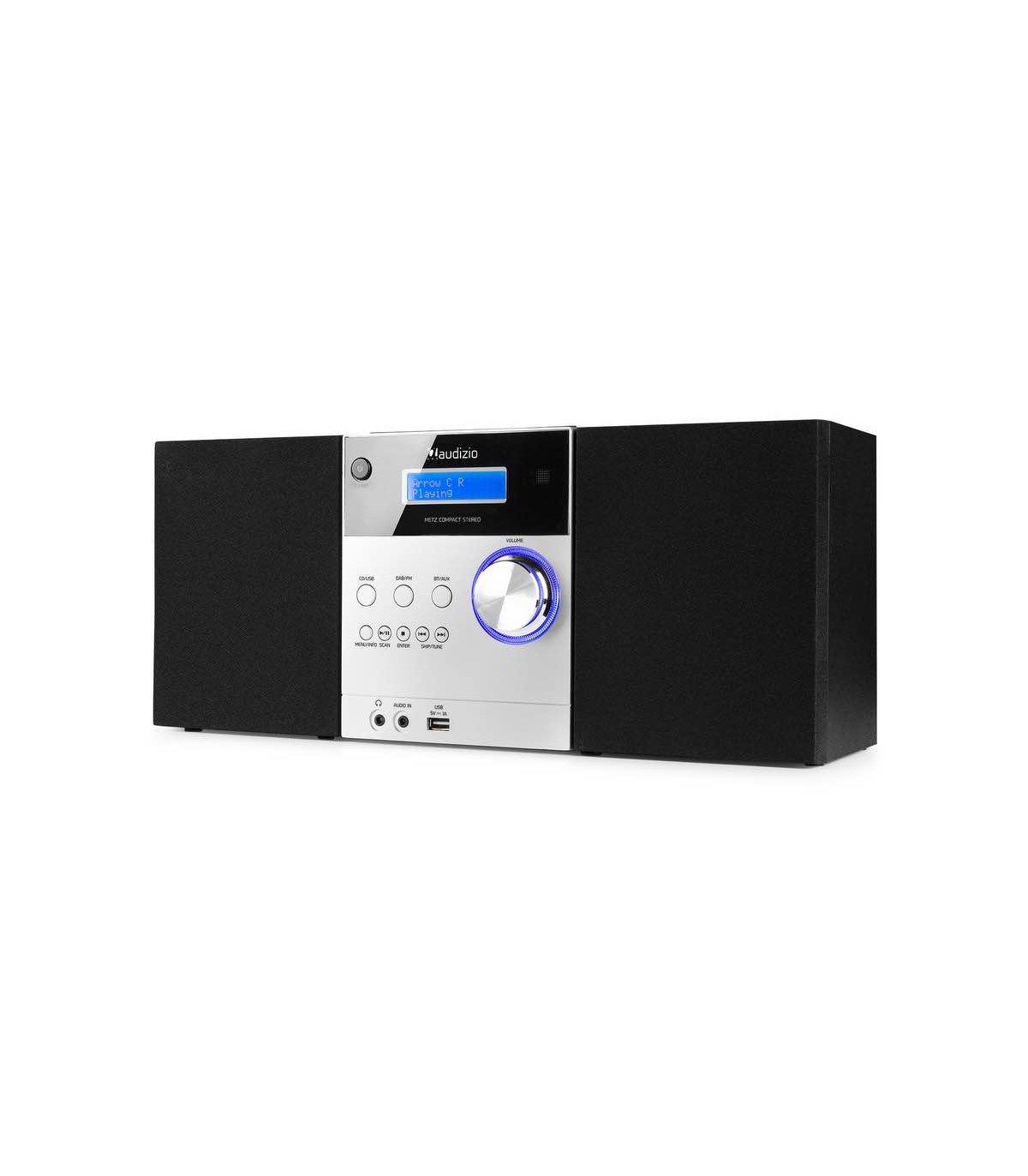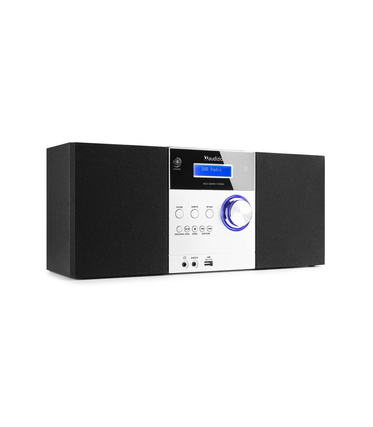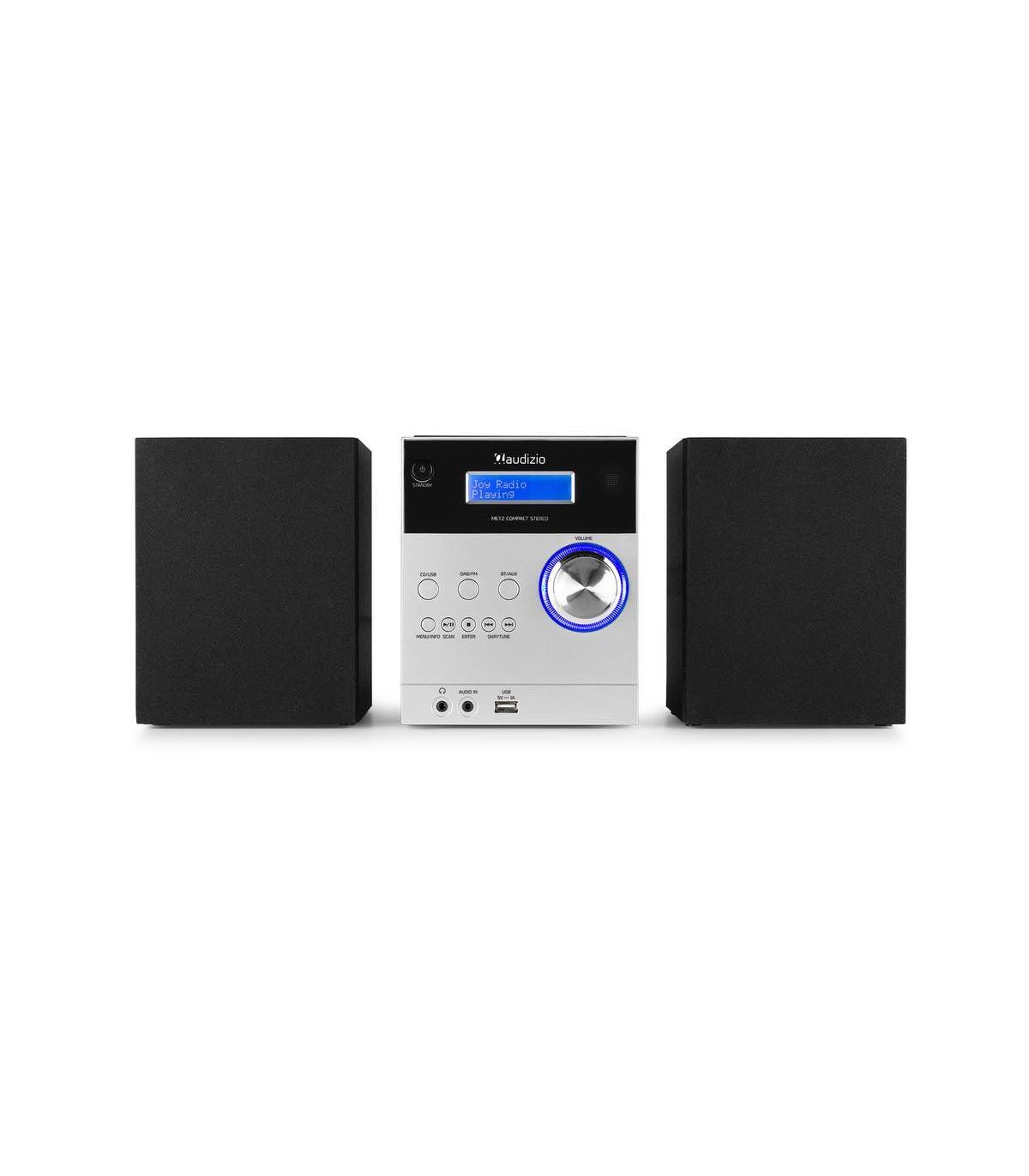 Perfetto sia in casa che in ufficio, il Metz Micro unisce compattezza, stile ed un'ottima riproduzione del suono con il DAB+. Grazie alla tecnologia wireless BT puoi riprodurre la musica da tablet o smartphone. Puoi ascoltare un CD, collegare il PC o il lettore MP3 tramite la porta USB o dagli ingressi AUX. Il Metz Micro concilia stile e ottima qualità sonora. Dotato di orologio digitale con ampio display. Gli speakers possono essere staccati e posizionati dove si preferisce. Puoi regolare tutte le funzioni senza alzarti dalla sedia grazie al telecomando incluso.