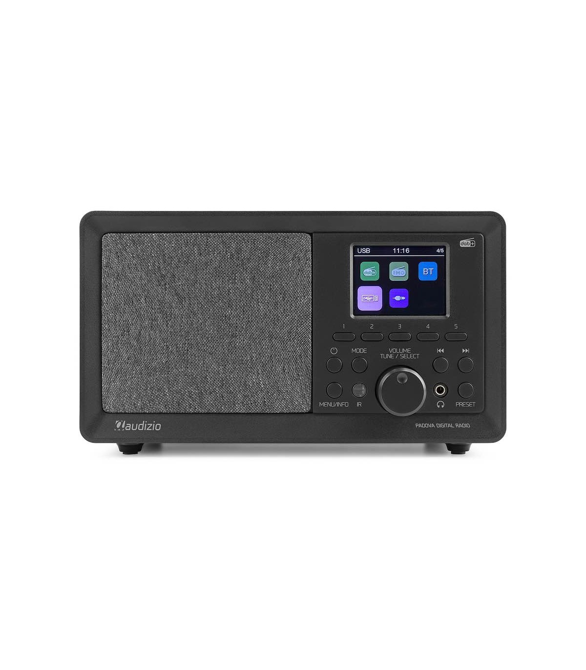 Entra nel mondo della radio digitale con l'elegante radio Padova DAB+. L'uso della radio digitale DAB+ significa che puoi avere accesso a più stazioni rispetto a quelle trasmesse sulla radio FM analogica e, naturalmente, puoi godertele con una qualità del suono digitale. La Radio Digitale di Padova dispone inoltre di un ampio display LCD a colori che mostra la stazione radio selezionata, oltre alla programmazione in corso, alle notizie e alle informazioni meteo, se abilitate dall'emittente. Con la tecnologia wireless BT, riproduci la musica direttamente dal tuo smartphone, tablet o PC. Perfetto per qualsiasi stanza della casa.