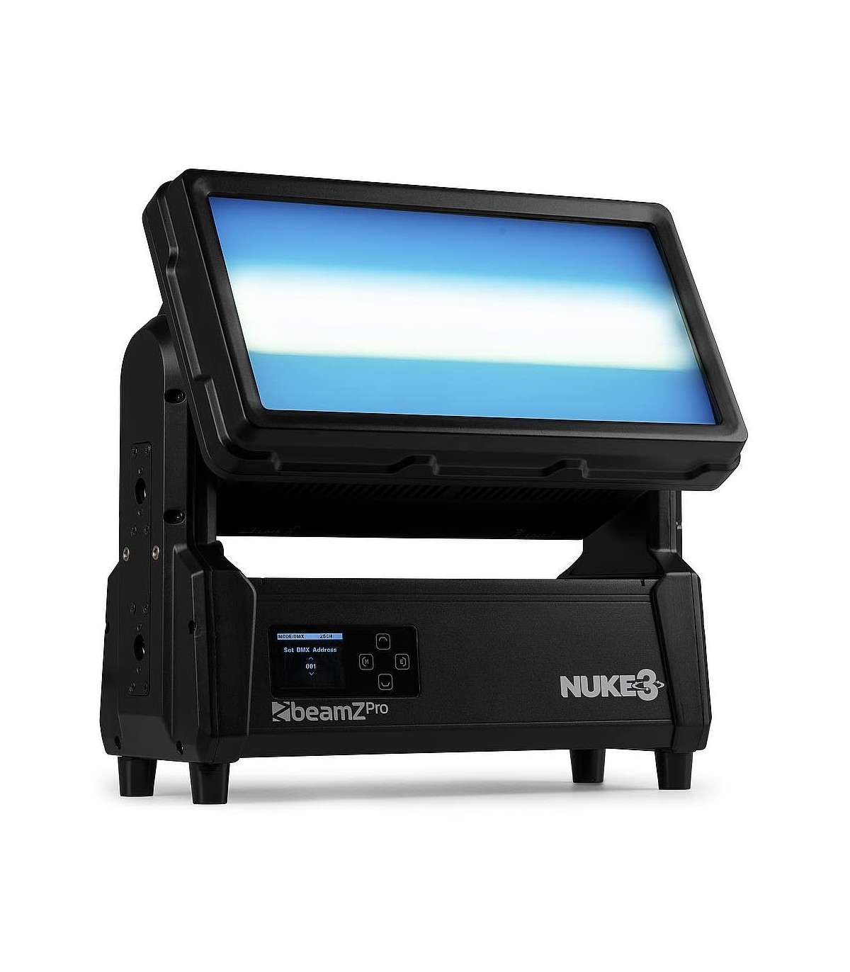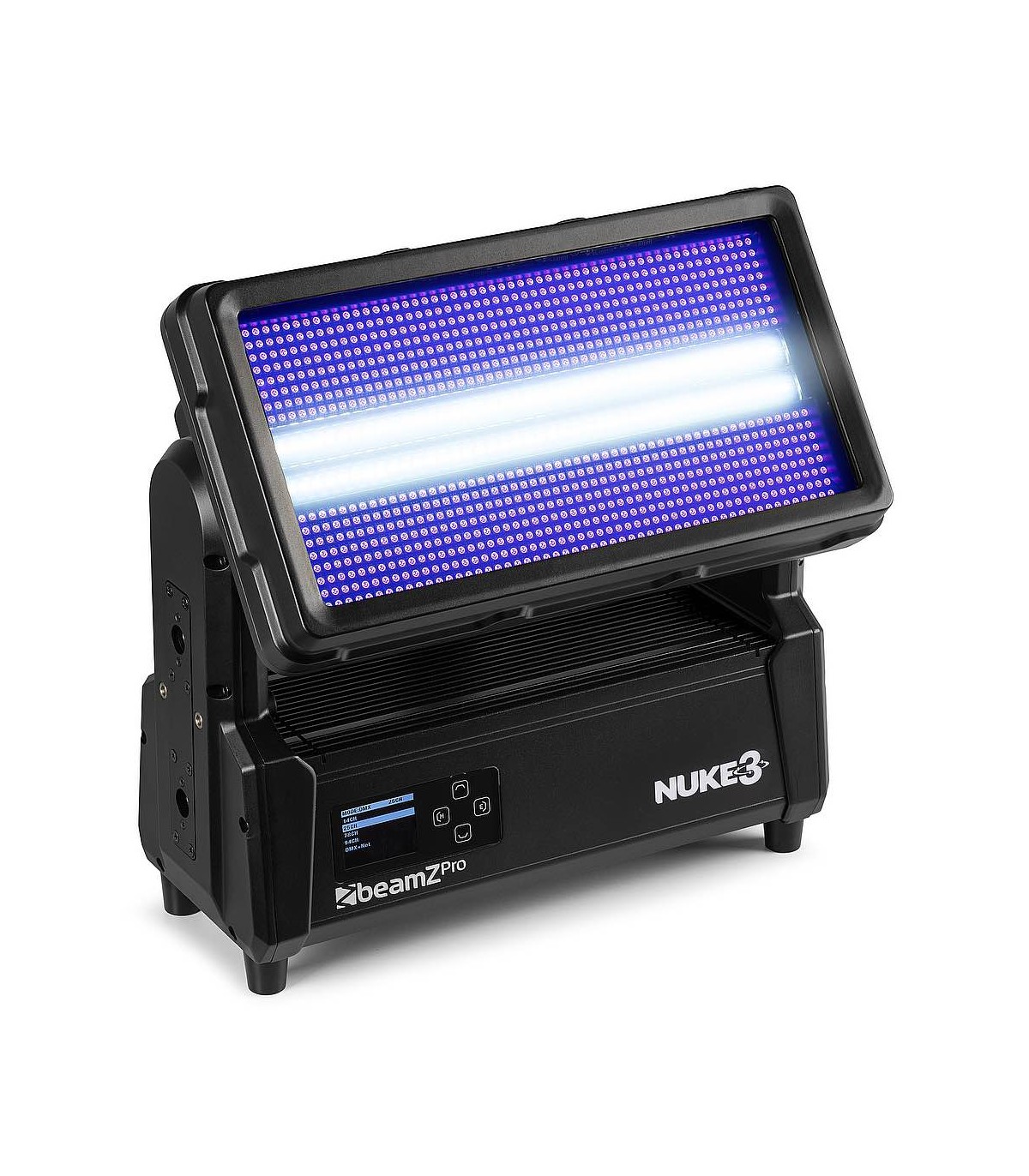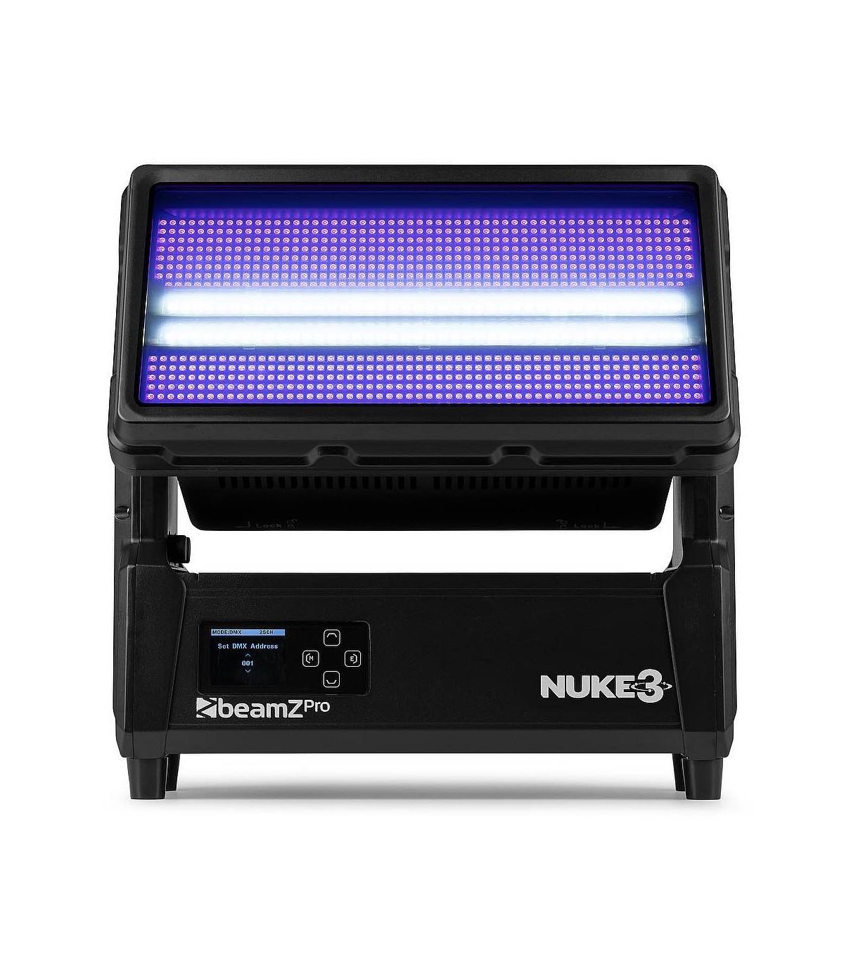 Il Nuke3 Motorized Strobe/Wash è un potente concentrato di illuminazione dinamica progettato per versatilità e impatto. Con un intervallo di inclinazione motorizzato di 180°, questo apparecchio ibrido passa senza problemi da un potente flash a un raggio colorato o da un'accattivante combinazione di entrambi gli effetti. Dotato di 96 LED bianco freddo da 10 W e 864 LED SMD RGB da 0,5 W, Nuke3 offre una brillante tavolozza di colori e un'intensa luce bianca. Le zone pixel-mappabili, filtro antigelo elettronico, il controllo DMX e i programmi automatizzati rendono la creazione di straordinari effetti di luce un gioco da ragazzi. Il suo grado di impermeabilità IP65 garantisce prestazioni affidabili all'aperto, rendendo Nuke2 la scelta ideale sia per eventi indoor che outdoor.