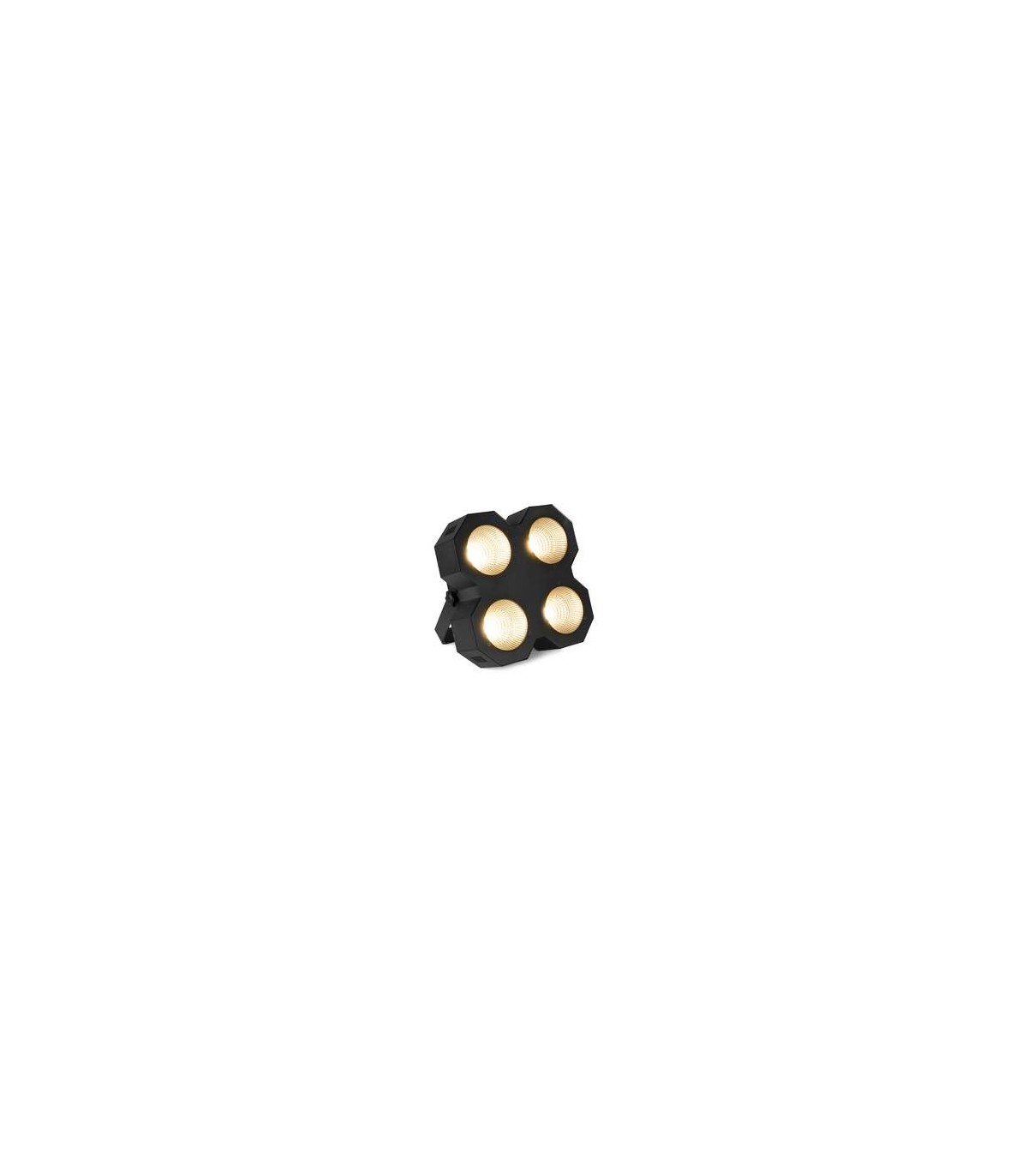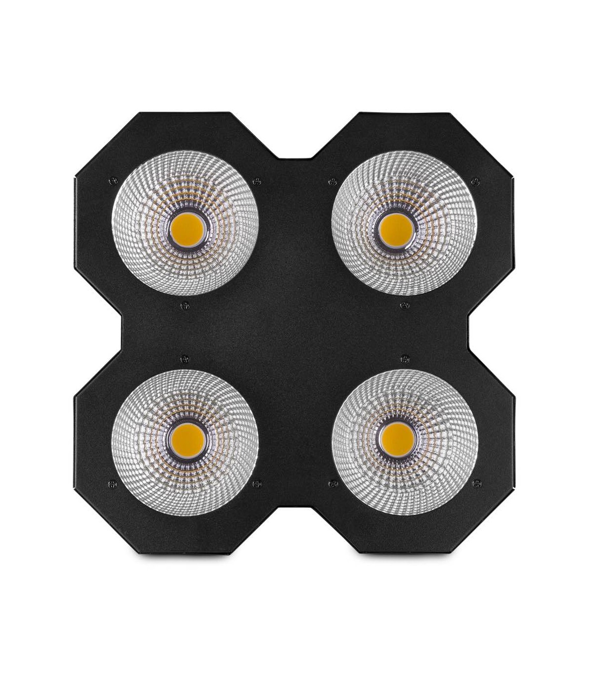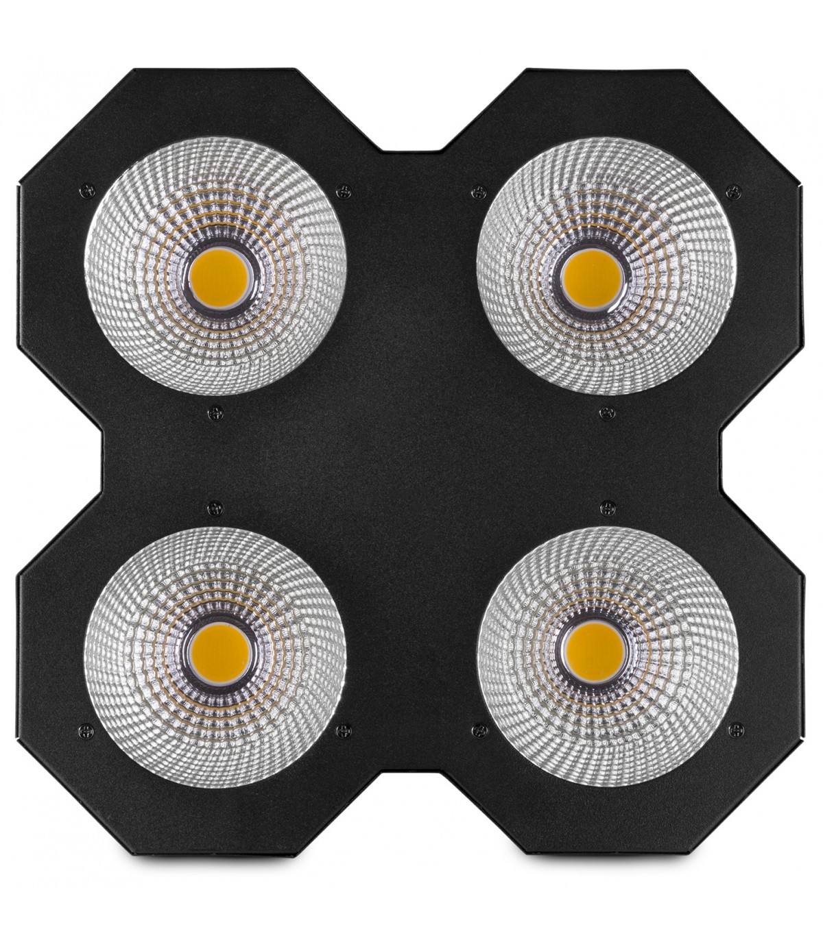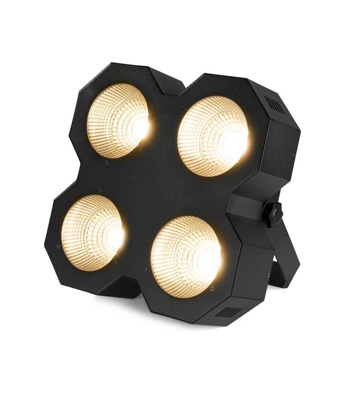 SB400 Stage Blinder è un potente apparecchio di illuminazione a LED con un design robusto dotato di LED da 50 W Chip-on-Board (COB) che combina due effetti nella sua sede. Oltre a uno stage blinder, questo dispositivo può anche essere usato come stroboscopio. L'SB400 combina l'emissione luminosa accecante di un Audience Blinder convenzionale e può essere controllato in modalità stand alone, in modalità di attivazione del suono o direttamente tramite DMX in una modalità a 8 canali. I LED hanno un'aspettativa di vita di 100.000 ore. Il colore dei LED è bianco caldo