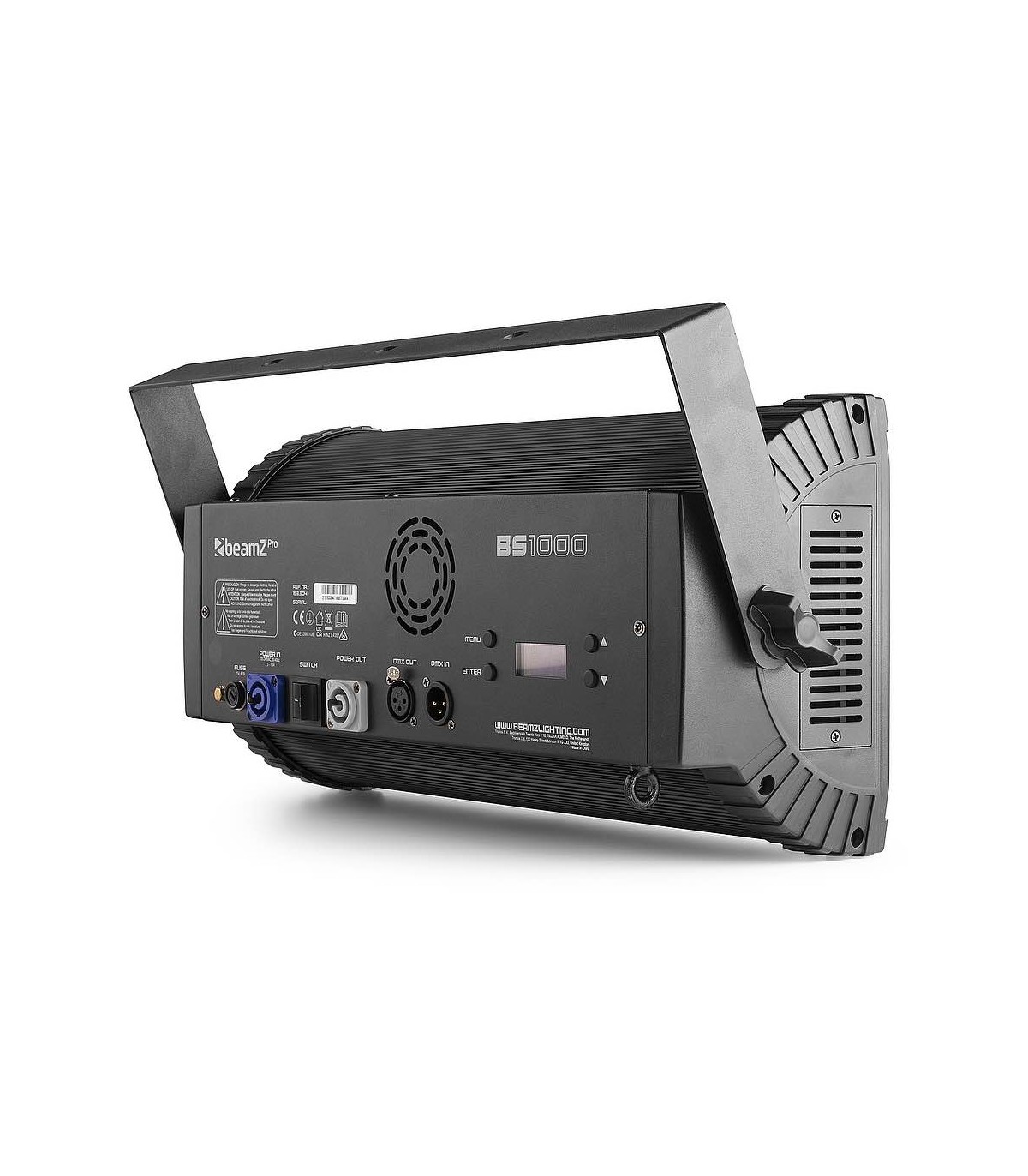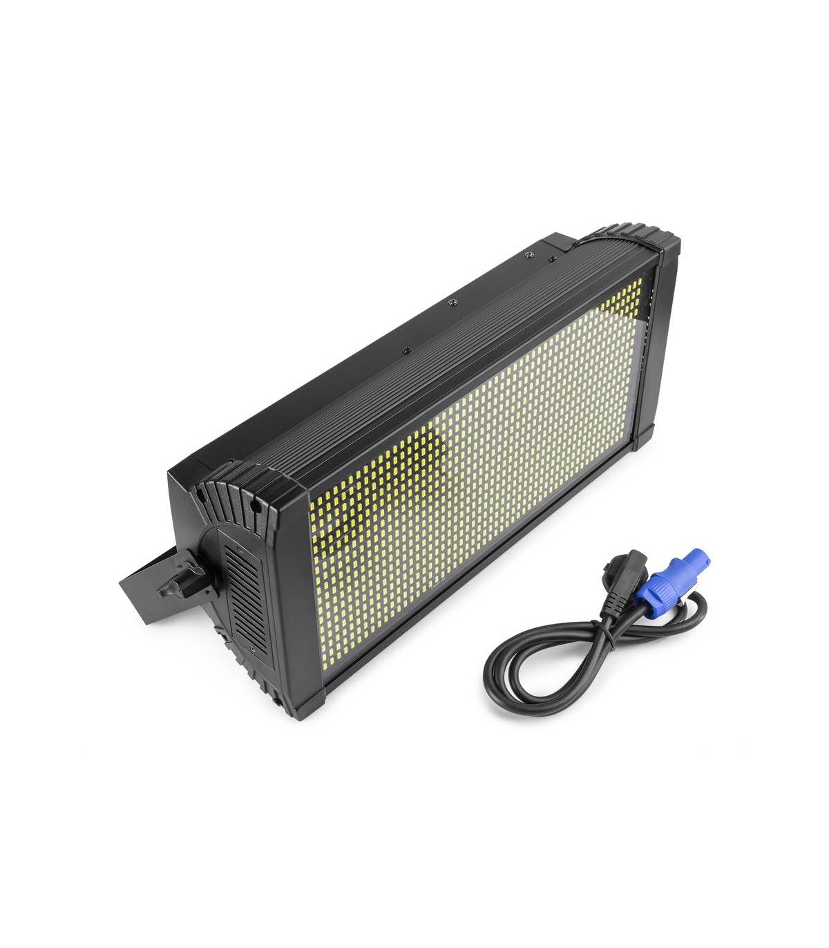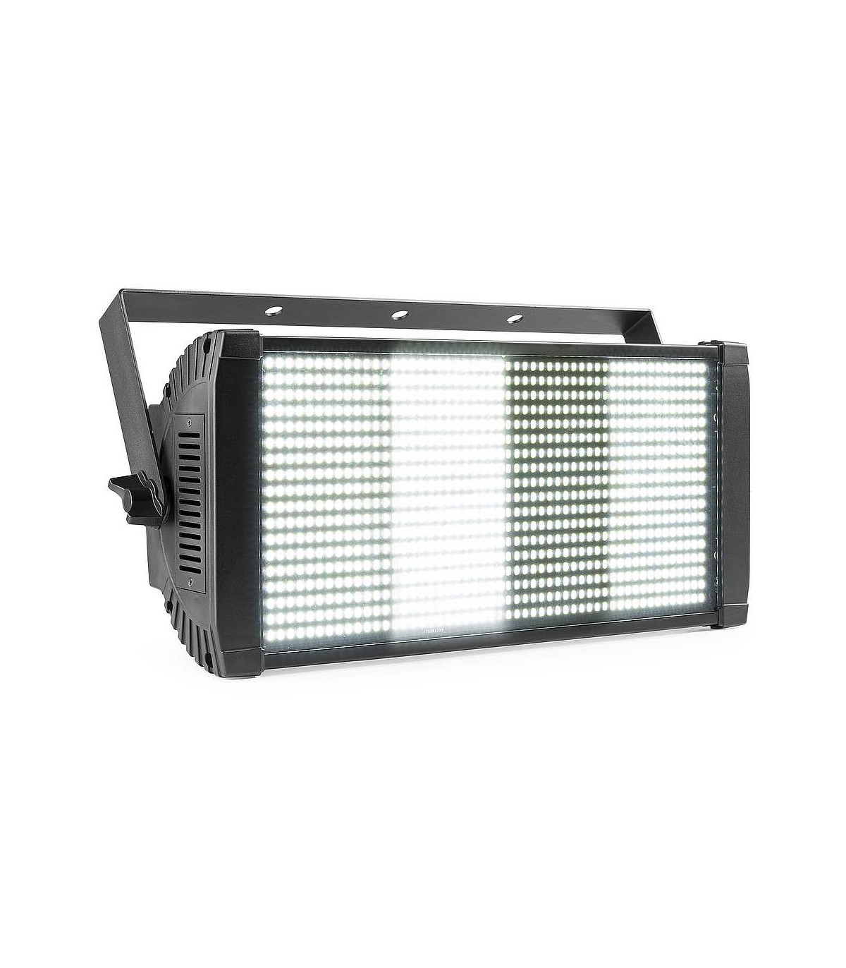 Il BS1000 è un potente strobo LED dotato di 936 LED di colore bianco freddo intenso che garantiscono un'emissione di abbagliamento estremamente elevata. Le opzioni di controllo avanzate trasformano questo dispositivo da un semplice strobo in un accecatore o in un wash fredda bianca con una gamma di modelli di chase in cui la velocità e l'intensità possono essere controllate per effetti spettacolari. Il BS1000 dispone di 936 LED Cool White ed è adatto a tutti i tipi di spettacoli ed eventi.
