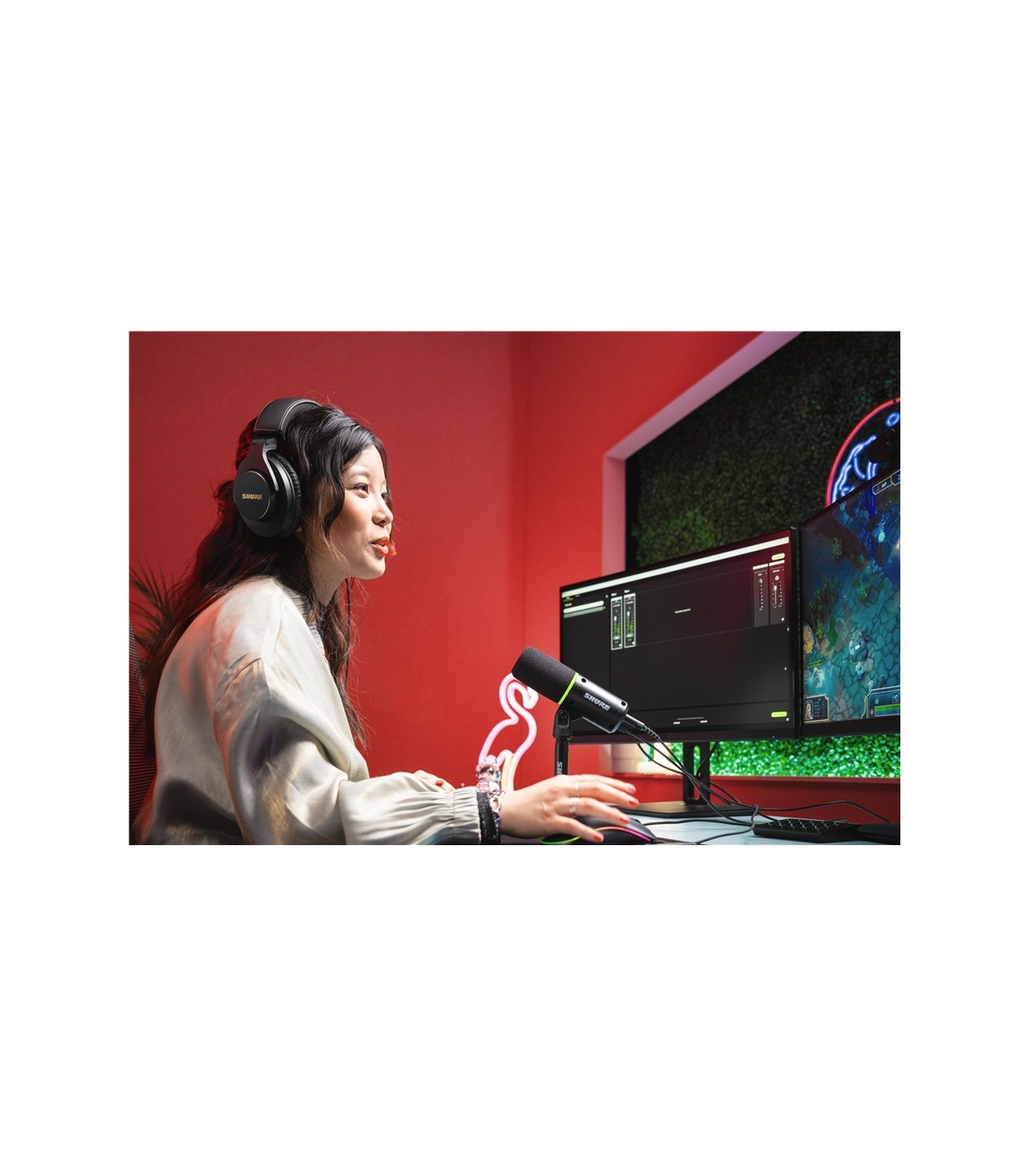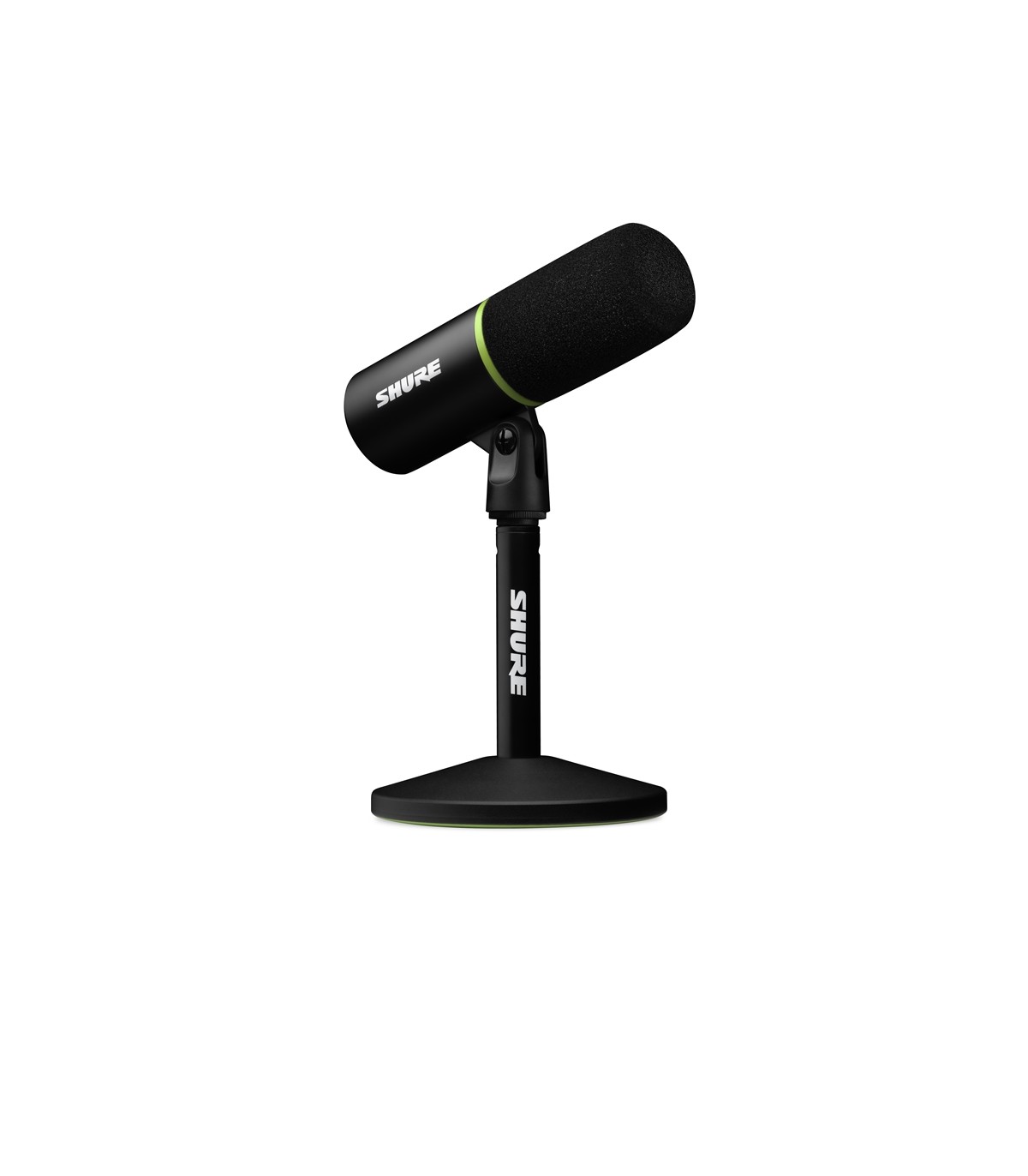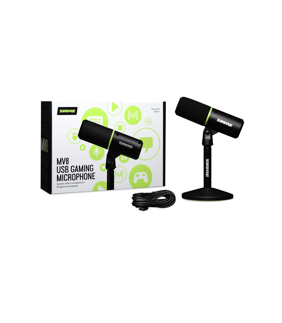 Lo Shure MV6 è un microfono USB C di tipo dinamico, cardioide, dal prezzo contenuto, progettato appositamente per gamer e live streamer con funzioni Digital Popper Stopper, Denoiser, Voice Isolation e Auto Level. Fornito insieme a uno stand da tavolo con base circolare, MV6 è dotato di uscita mini-jack TRS per monitoraggio in cuffia, è certificato per l’uso con OBS, compatibile con la maggior parte dei dispositivi desktop Windows/Mac e mobili Android/iOS. Supportato dalle App desktop e mobili Shure MOTIV.