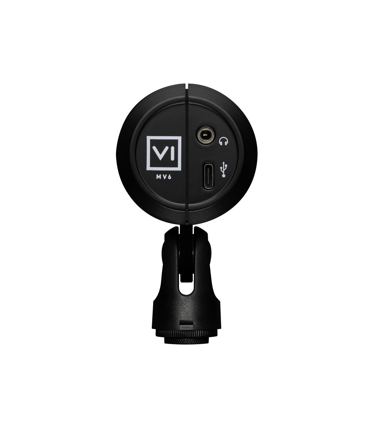 Progettato per essere compatibile con i setup moderni, MV6 si presenta con una connessione USB-C che garantisce un collegamento e un’alimentazione immediata da PC, laptop o dispositivi mobili. Inoltre, è presente un'uscita cuffie mini-jack da 3,5mm per il monitoraggio in tempo reale, con la possibilità di configurare il mix di monitoraggio all’interno dell'app MOTIV Mix™. Il pulsante di silenziamento tattile (Tap-to-Mute) rappresenta un controllo fisico istantaneo, utile a silenziare rapidamente il microfono con un semplice tocco. Questa funzione è particolarmente indicata durante le sessioni di streaming o di videoconferenza, per garantire l’adeguata privacy quando necessario.