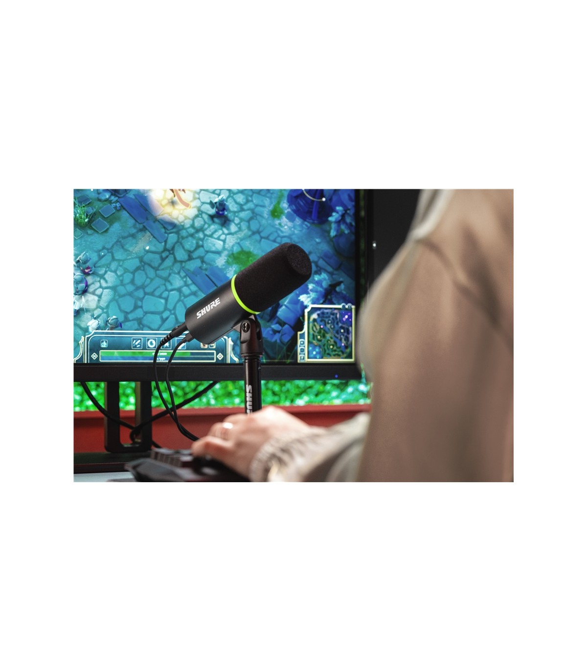 Lo Shure MV6 è perfetto per chi vuole dotarsi di un microfono dinamico USB, per chi vuole aumentare la qualità audio delle proprie trasmissioni in diretta web per portarle ad un livello superiore rispetto a quanto si ottiene impiegando i microfoni integrati nei device, nelle cuffie o negli auricolari. Progettato specificamente per assolvere alle necessità dei gamer e degli streamer, MV6 sfrutta la tecnologia ereditata dai microfoni più rinomati e professionali presenti nel catalogo Shure: SM7 (clicca qui per info/acquisto) e MV7 (clicca qui per info/acquisto). Il risultato? Un'esperienza audio di ottimo livello, sin dal primo utilizzo. Grazie alla sua interfaccia audio USB-C integrata, è semplice da collegare e pronto per esser utilizzato su una vasta gamma di dispositivi, computer fissi e portatili, tablet e smartphone, senza alcun bisogno di conoscenze tecniche approfondite. Questo microfono è ideale per chi cerca una soluzione plug-and-play, ottimizzata per catturare ogni sfumatura vocale con chiarezza e precisione.