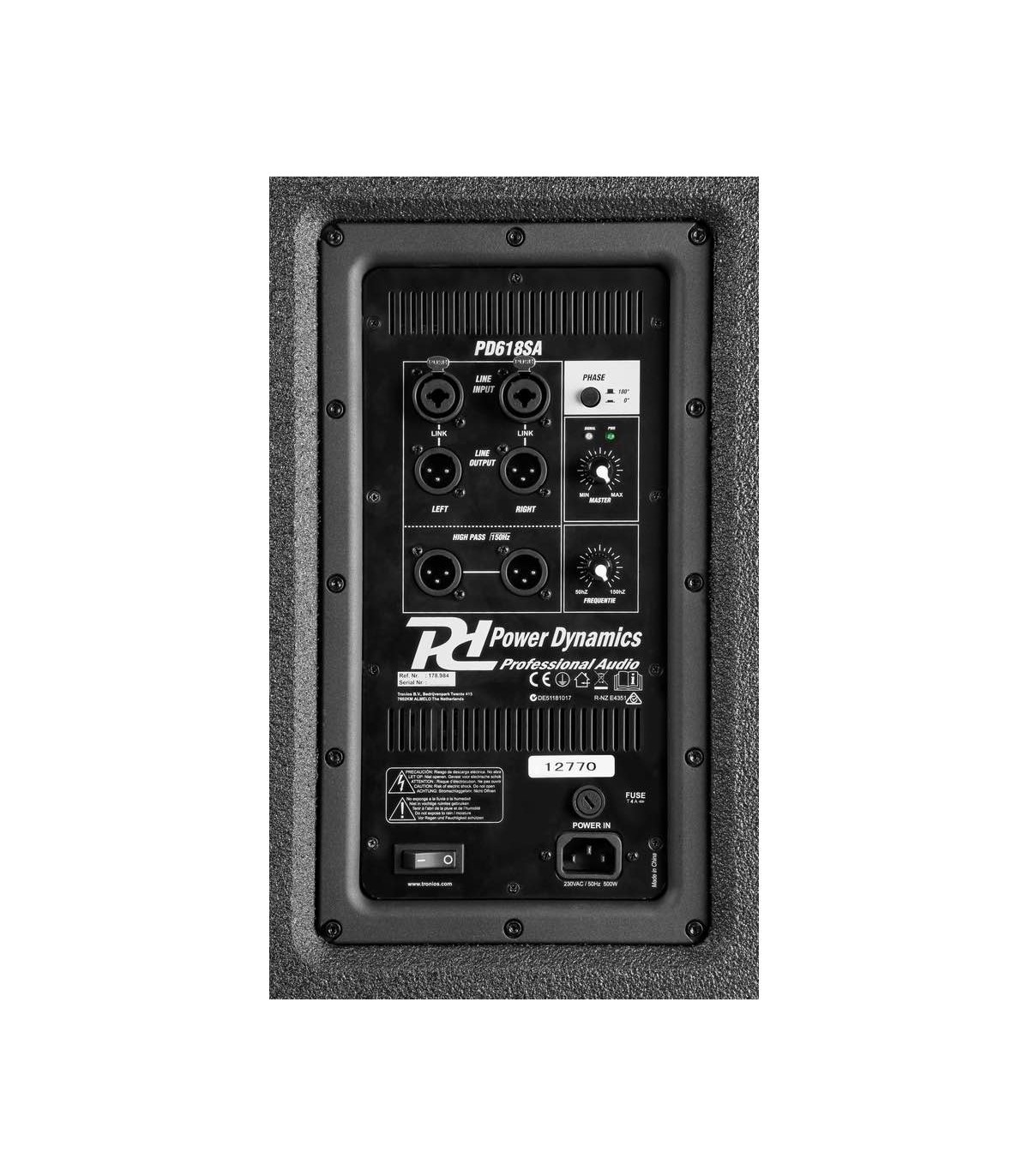 La serie PD6 è una serie di diffusori professionali di alta qualità all'interno di un alloggiamento in multistrato resistente. Rifinita con rivestimenti in gomma nera per proteggere il cabinet durante il trasporto. La serie PD6 è ideali per il noleggio e per l'uso in tour e offre un'uscita sufficiente per grandi ambienti ed eventi. Sono una soluzione per applicazioni professionali estremamente economica. Il sub dotato di woofer da 18" ha una potenza in uscita di 700W e produce una pressione acustica di 130 dB. Il crossover interno assicura che gli alti vengano distribuiti al diffusore satellite. Il subwoofer è dotato di uscita "loop through" per collegare un secondo subwoofer o un amplificatore, nonché di un'uscita passa alto per il collegamento diretto di diffusori satellite. L'uscita passa alto dispone di un crossover integrato regolabile fra 50 e 150 Hz.
