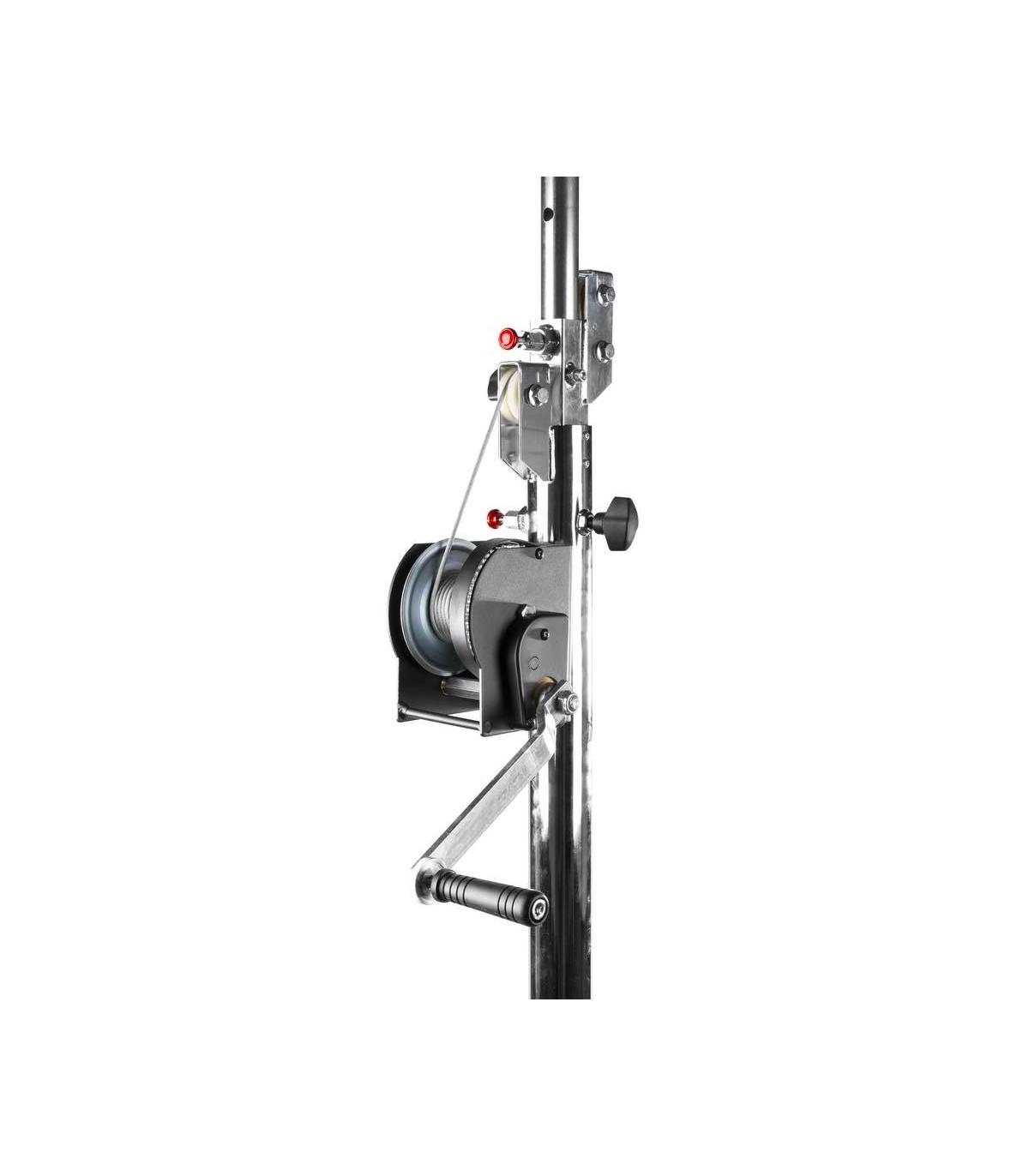 Il WLS80 è un supporto per treppiede multiuso con verricello, adatto per illuminazione, altoparlanti o tralicci. Il sistema consente di sollevare facilmente altoparlanti pesanti. Caratterizzato da un'altezza massima di 4,10 metri, lo stativo per luci WLS80 è in grado di supportare in sicurezza fino a 80 kg, mentre il blocco di sicurezza funziona per evitare che il carico scenda in modo incontrollato. Ideale per l'uso nelle seguenti applicazioni in luoghi: scuole, teatri, club, bar, strutture per conferenze, luoghi di intrattenimento, studi e con tutti gli altri tipi di eventi.