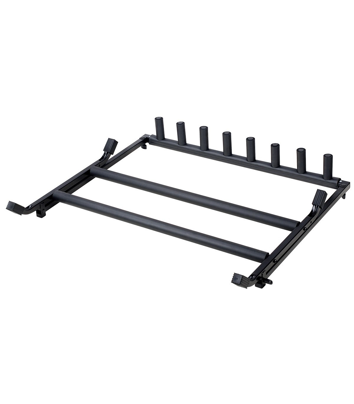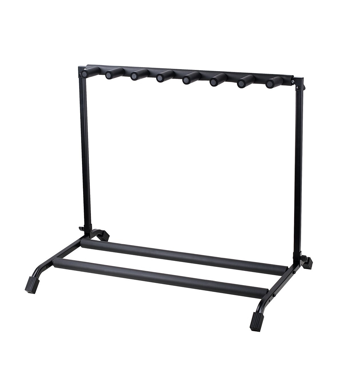 Supporto per 7 chitarre pieghevole, in metallo con rifiniture in gomma antigraffio. Leggero ma stabile grazie alle staffe di rinforzo sul telaio, ideale per essere trasportato ovunque col minimo sforzo e ingombro.Provvisto di piedini in gomma antiscivolo e antigraffio.Adatto a chitarra classica, acustica, elettrica, basso.