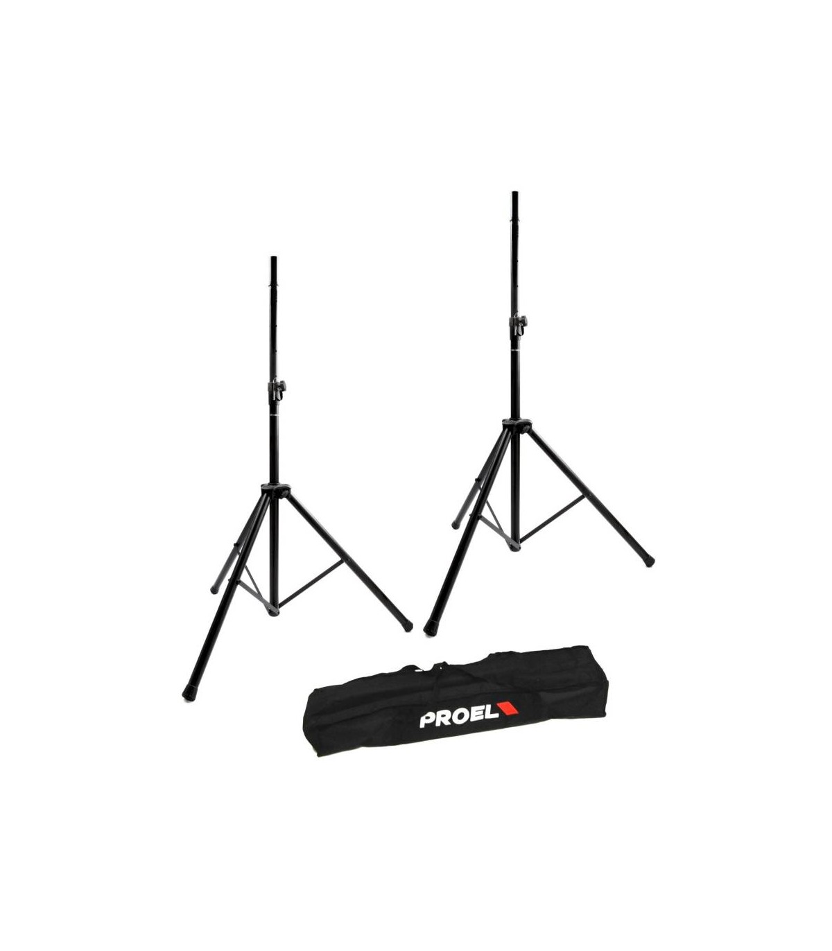 Coppia supporti professionali in alluminio per casse dotati di sistema di AIR-CUSHIONED e sistema di sicurezza con pin in acciaio per garantire massima sicurezza, velocità e facilità nelle operazioni di regolazione. I supporti vengono forniti con una pratica borsa per il trasporto in Nylon 210D.