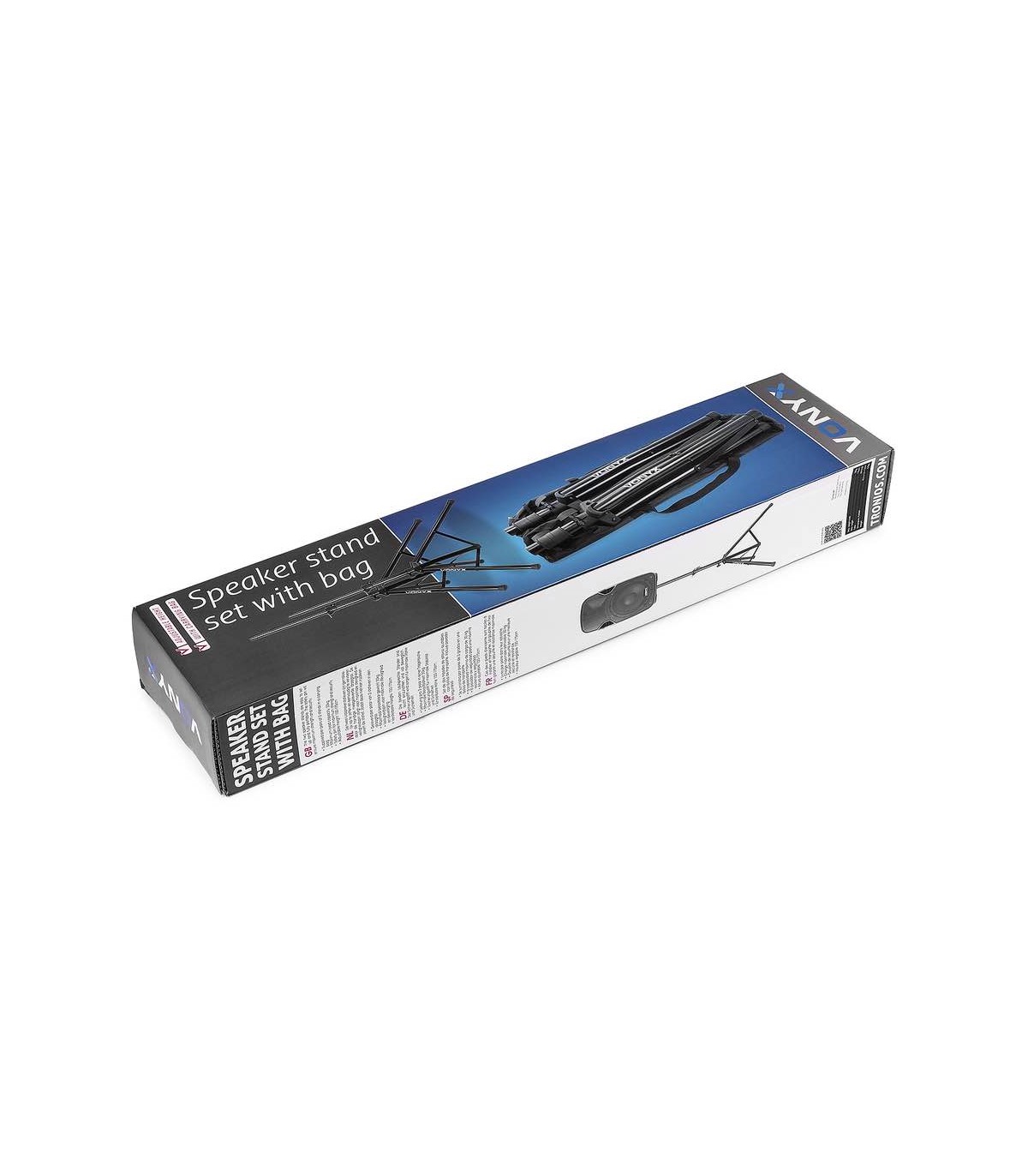 Il LS01K è un kit con 2 supporti per altoparlanti a treppiede pesanti con altezza regolabile e sono compatibili con qualsiasi tipo di altoparlanti con un diametro del foro di circa 35 mm. Questi supporti telescopici anodizzati neri per servizio pesante sono fatti di acciaio per una maggiore durata e stabilità e il design pieghevole permette di riporli e trasportarli facilmente. Le gambe del treppiede e l'asta sono bloccate in posizione con manopole a rotazione facili da usare e sono dotate di un ulteriore perno di sicurezza per evitare cadute improvvise dell'altoparlante. Gli stand sono in grado di supportare attrezzature fino a 30 kg di peso. Inclusa la custodia per il trasporto personalizzata.