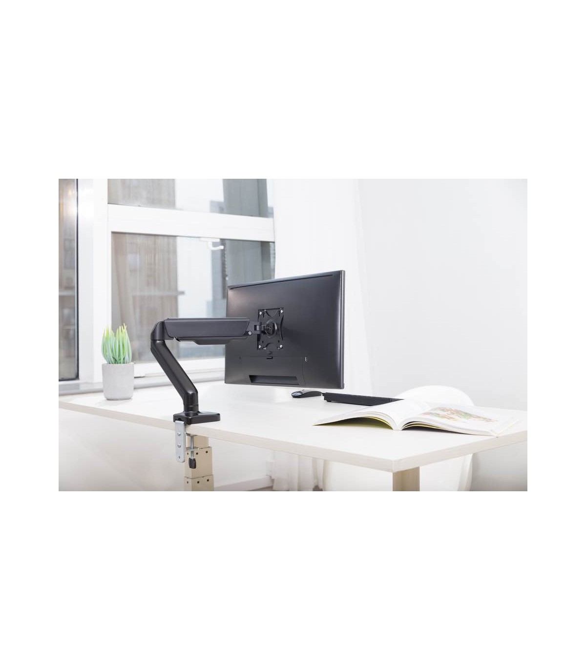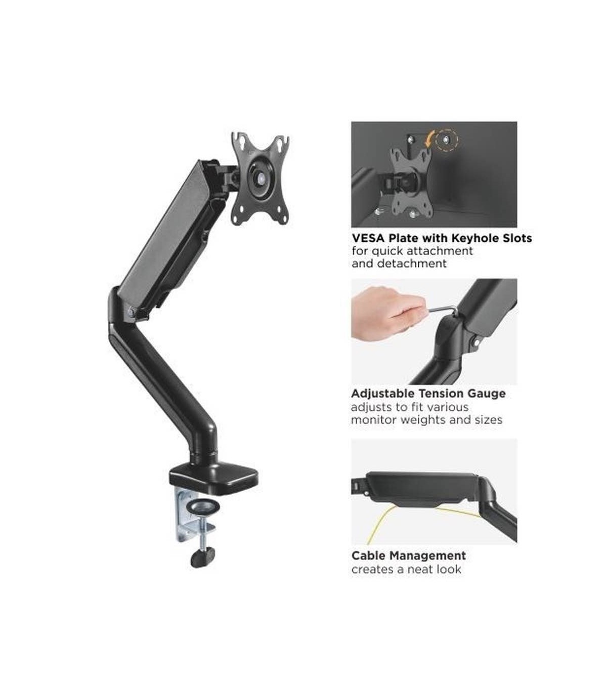 I Supporti per monitor MAD-G Serie Gas Spring sono solidi e robusti. Con il tocco di un dito, la molla a gas di alta qualità permette al monitor movimenti verso l'alto o il basso, estensione o meno per permetterti di trovare la posizione più ergonomica. La comoda piastra VESA e pattern a chiave permettono fissaggio e distacco facilitati. Morsetto da tavolo. Il sistema passacavo a scomparsa mantiene lo spazio di lavoro ordinato. Compatibile con VESA per 75 x 75 e 100 x 100.