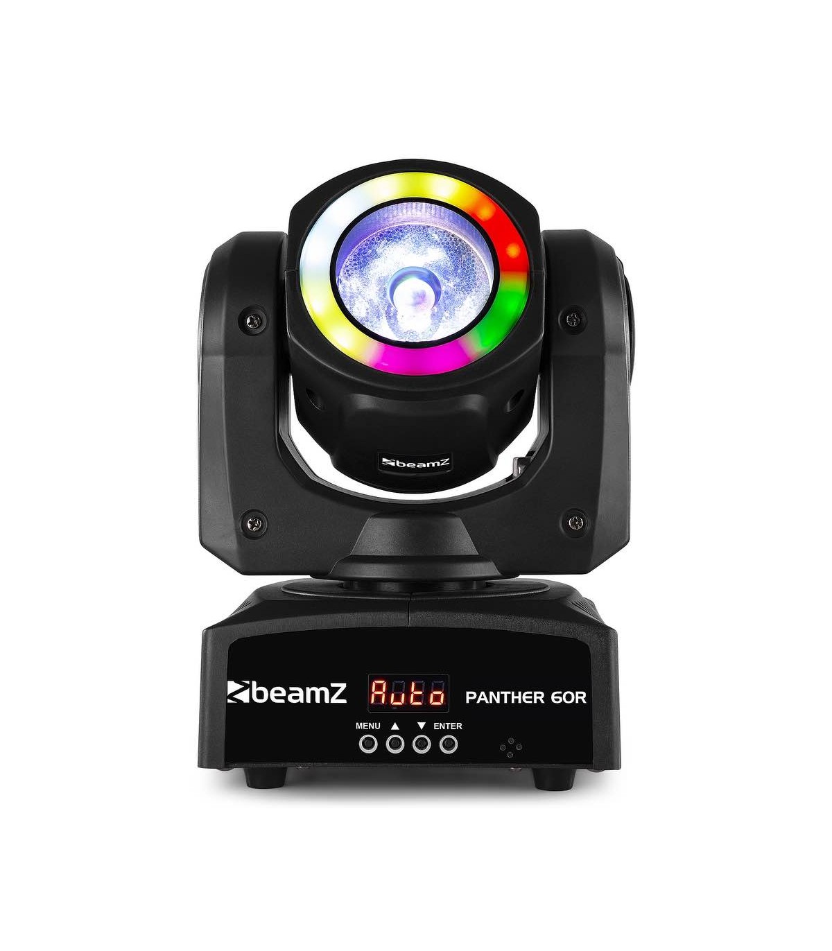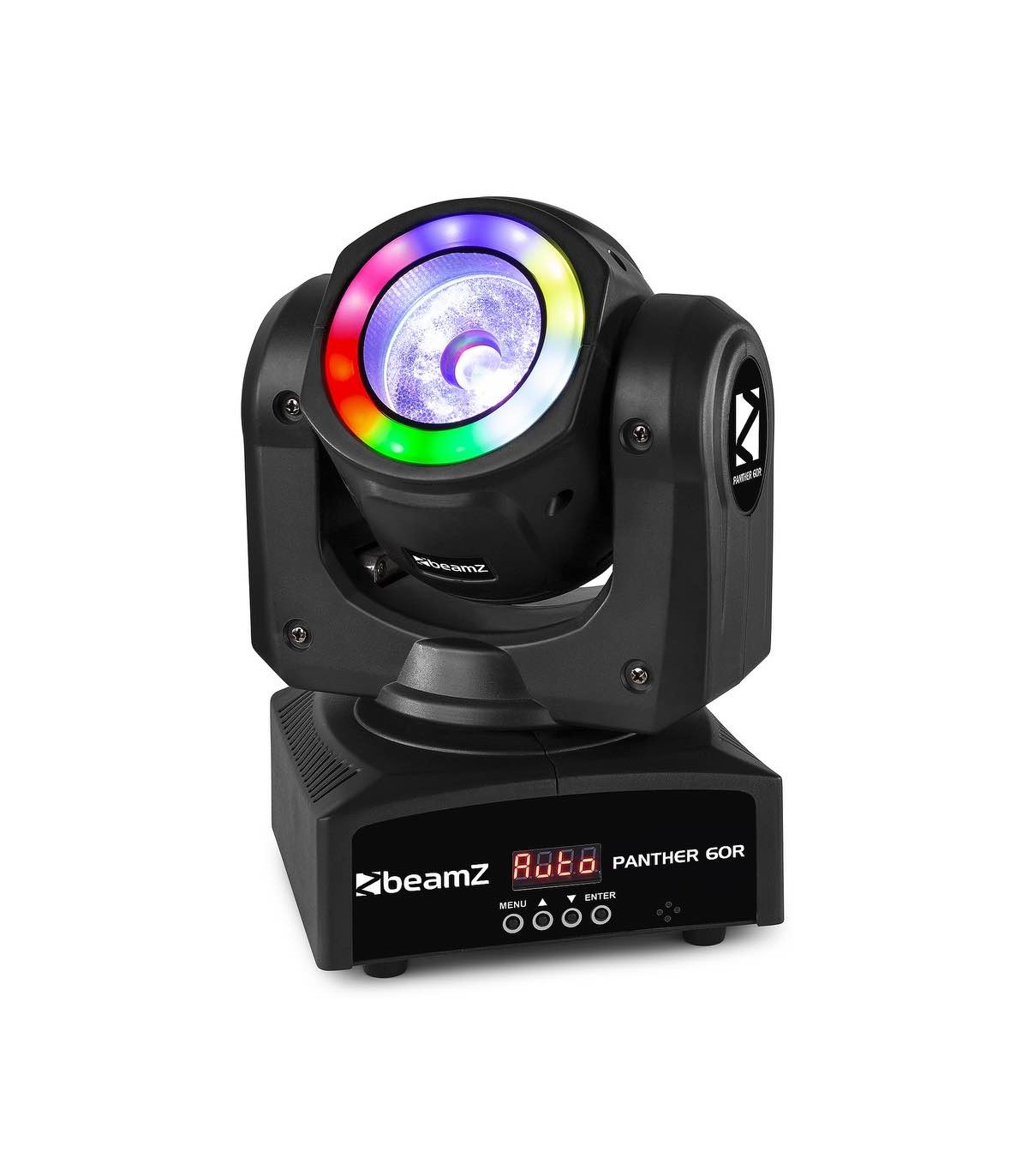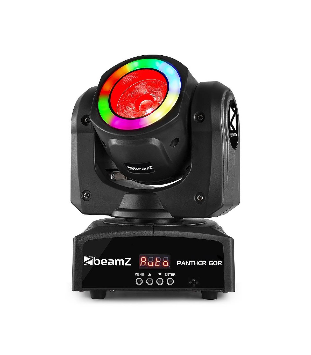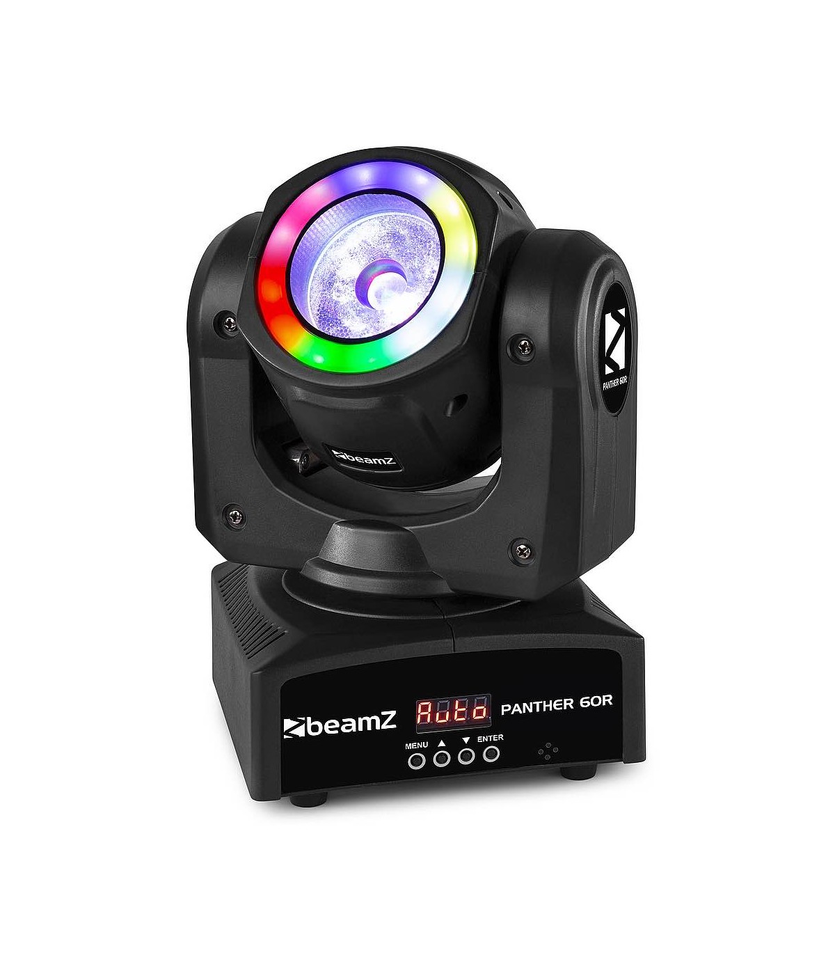 Una testa mobile molto compatta ma potente ed estremamente veloce con anello LED a effetto. Il LED Ultra-luminoso da 60W RGBW produce colori primari saturi, sottili tonalità pastello e sfumature naturali di bianco. Panter 60R è di facile funzionamento e con il suo angolo di fascio di 5 gradi ha un impatto fantastico sul tuo spettacolo di luci. L'anello LED è controllabile in 3 celle da 4 sezioni. Adatto per bar, club, DJ mobili e palcoscenico.