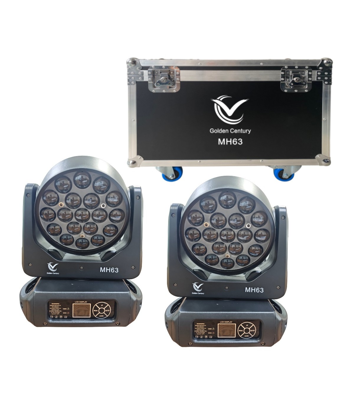 GOLDEN CENTURY MH63 - BEE EYES 19 X 15W RGBW / BUNDLE 2 IN 1 FLIGHT CASEBundle di 2 BEE EYES 19 x 15w 4 in 1 RGBW, in un flight case con ruote, 2+2 frenanti.Caratteristiche tecniche: Bee eyes 19 x 15w osram 4 in 1 RGBW ( led rossi, verdi, blu, bianchi ) Controllo: Auto, Sound, DMX, Master-Slave Rotazione pan di 540 gradi Rotazione tilt di 215 gradi Inclinazione Angolo Beam 8-50° Canali DMX: 16 / 24 Controllo DMX IN / OUT su connettori XLR 3Pin Alimentazione in entrata tramite connettore PowerCon IN blu Alimentazione in entrata tramite connettore PowerCon OUT bianco Voltaggio: AC 220V, 50/60Hz Dimensioni: 300 x 190 x 380 mm cadauna Flight case con 2+2 ruote frenanti incluso Peso netto: 7,5 Kg Peso lordo: 8,9 Kg.