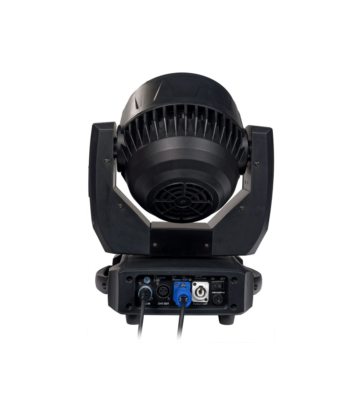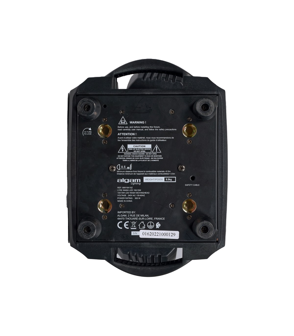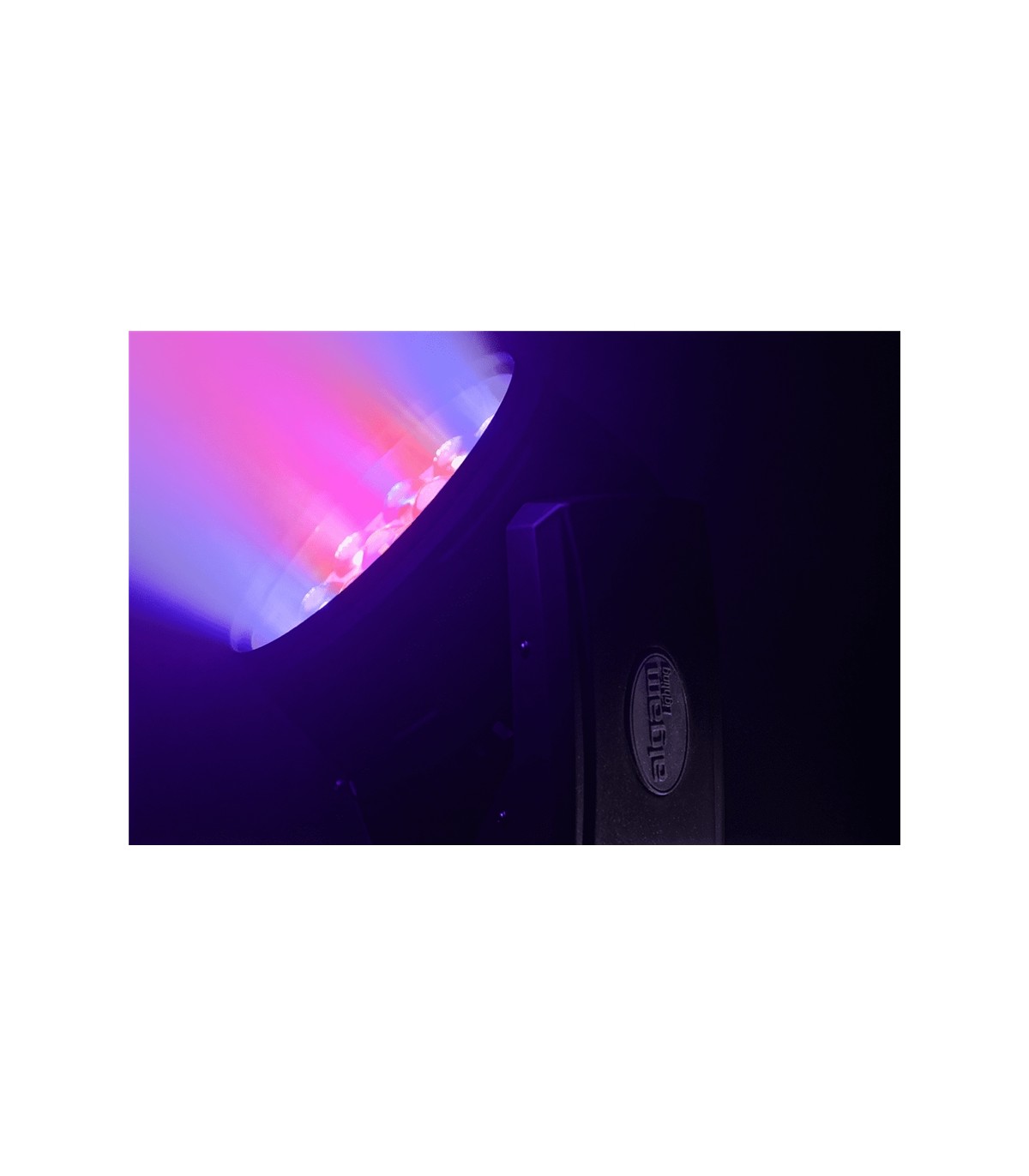 L'Algam Lighting MW19x15Z è uno WASH testa mobile con meccanismo a lira dotato di 19 LEDs RGBW da 15W ciascuno.