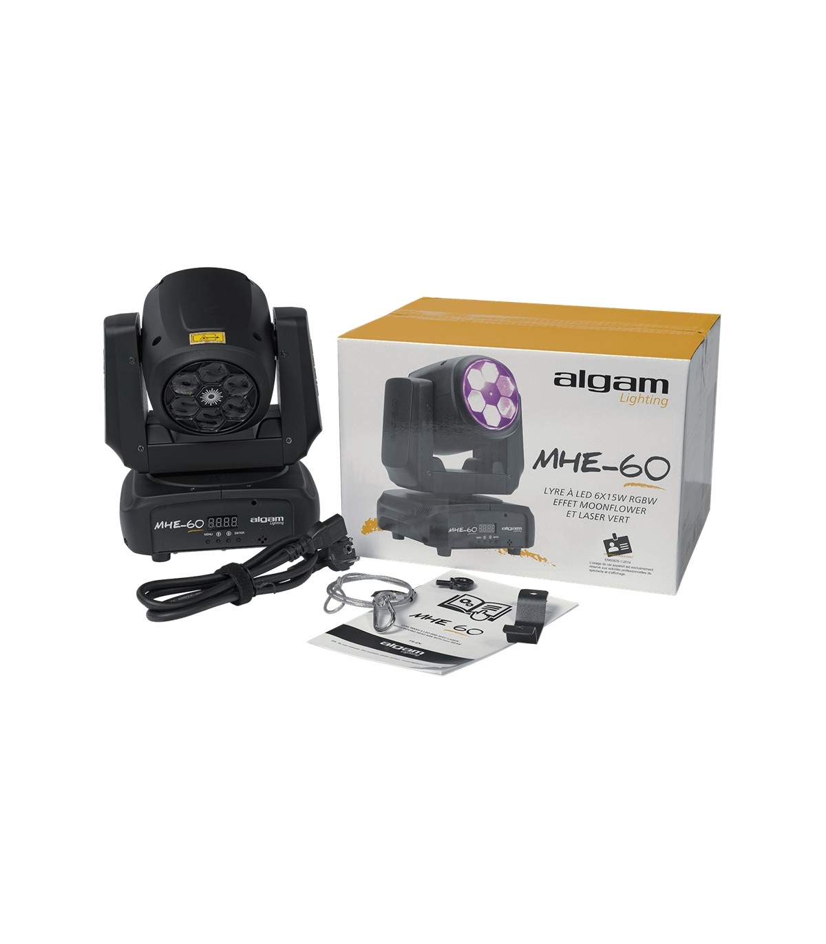 La testa mobile MHE60 è dotata di 6 potenti LED RGBW da 15W che proiettano un fascio di luce che supporta effetti wash rotanti con una tavolozza di colori ammaliante grazie alla gestione indipendente dei colori di ciascuno dei LED. Incorpora anche un laser verde multipunto da 50 mw per regalare ancora più magia alle tue serate.