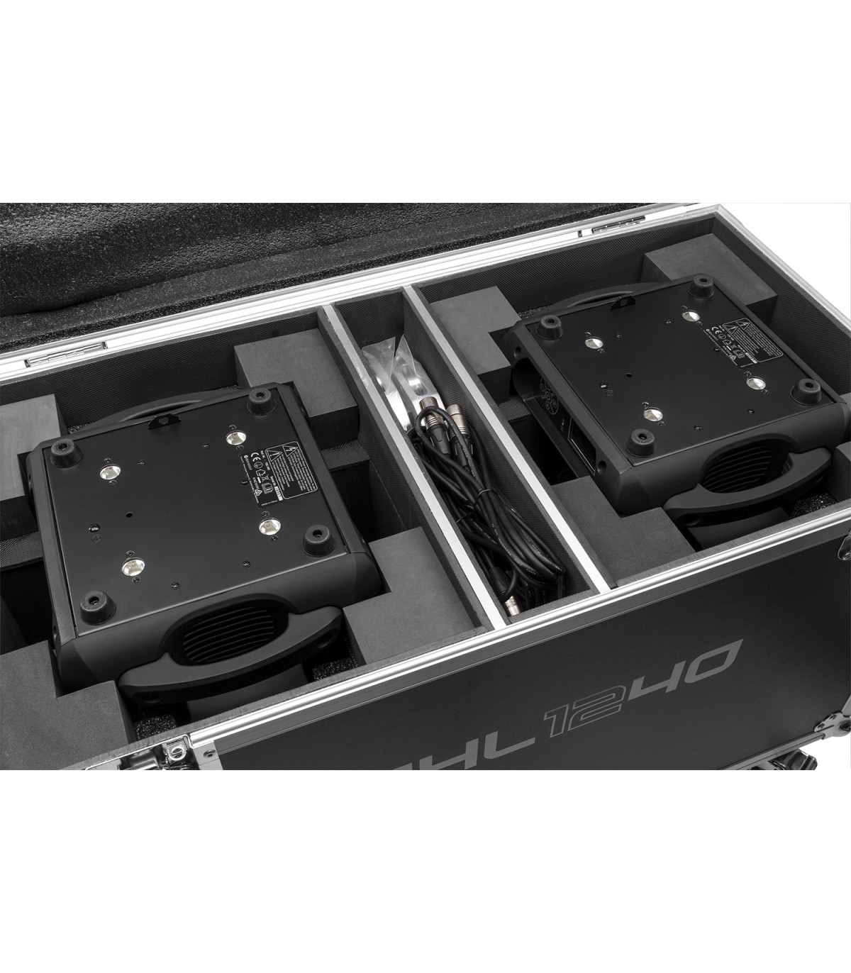Kit completo di 2 teste mobili MHL1240 fornite in un flight case solido e robusto. MHL1240 è una testa mobile Wash con zoom motorizzato lineare dotato di 12 LED 4 in 1 ultra luminosi da 40 Watt secondo la più recente tecnologia Led. Questa testa mobile è dotata di motori noiseless estremamente potenti, che consentono movimenti di panoramica e inclinazione ultrarapidi mantenendo il rumore al minimo. Perfettamente indicato per eventi e installazioni in club.