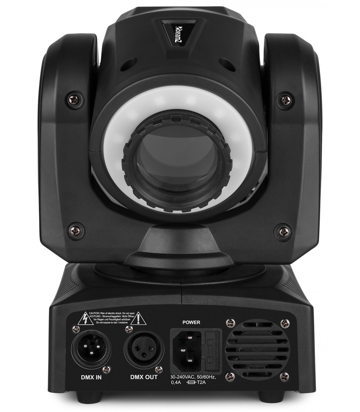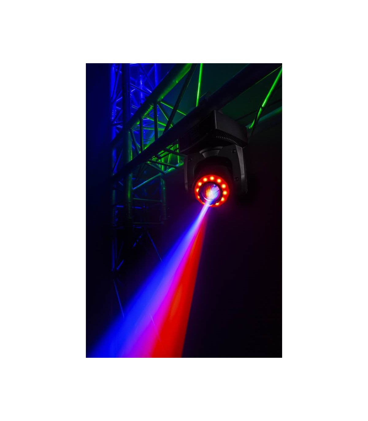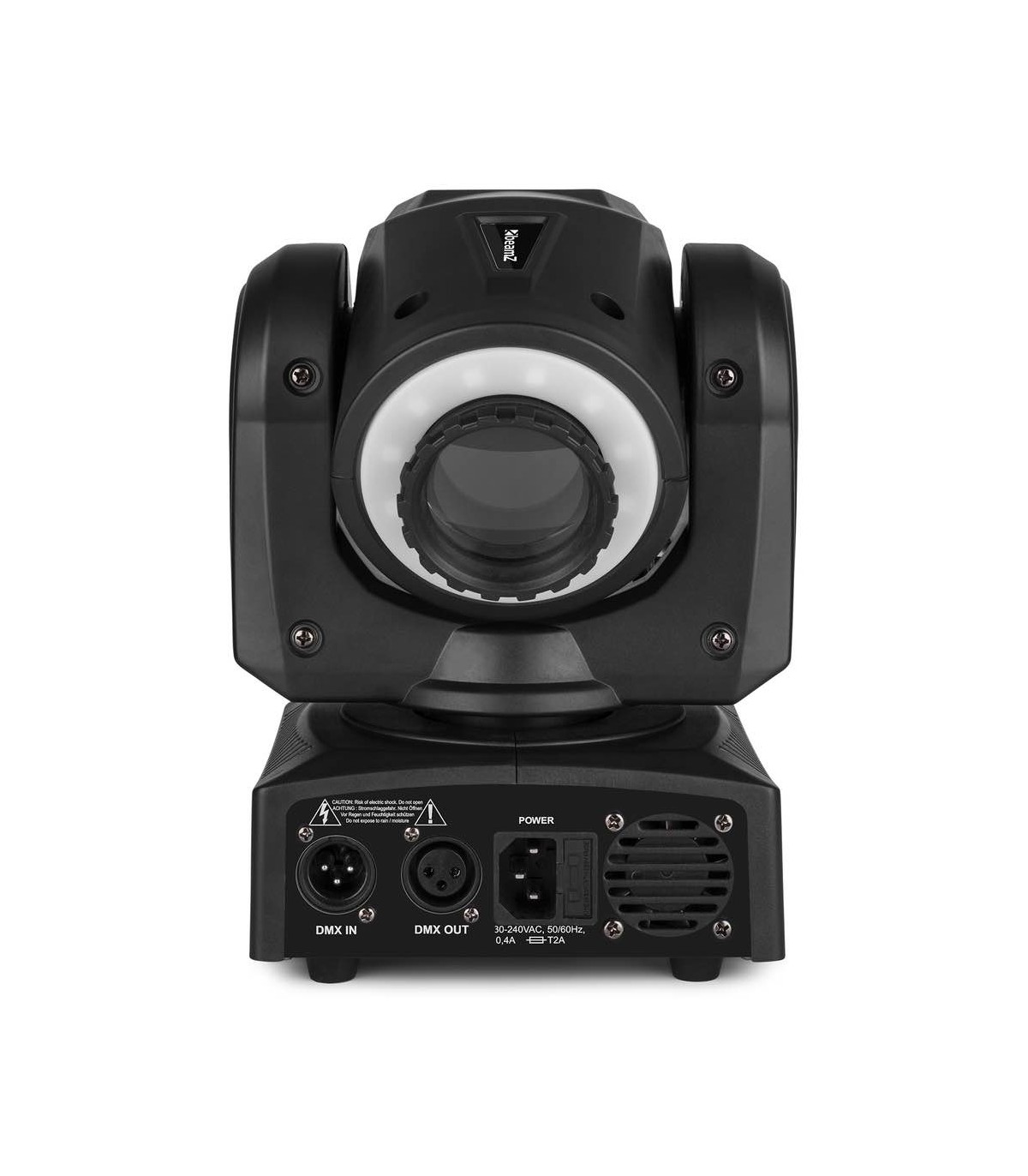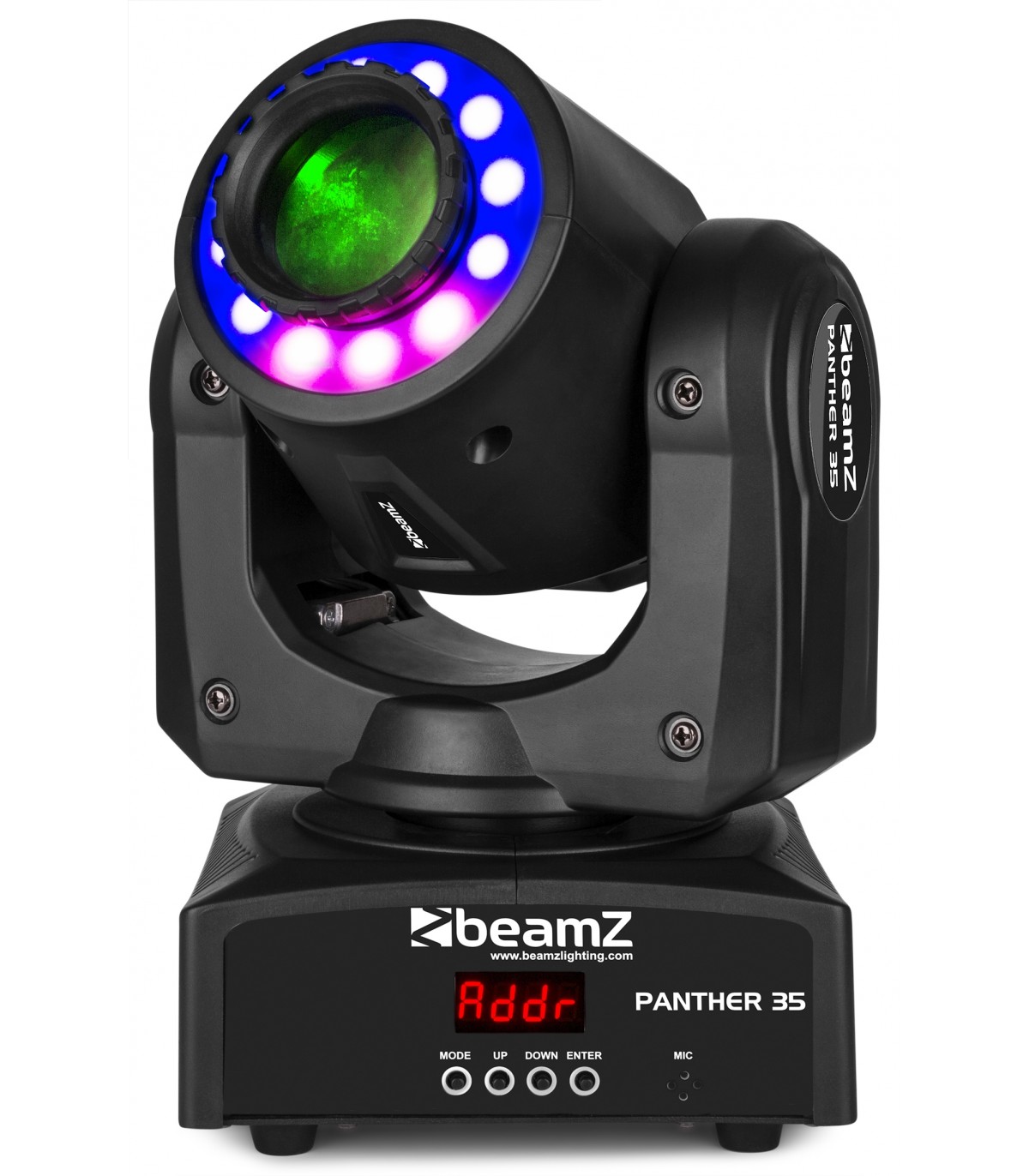 Panther 35 Spot è una potente testa mobile 2 in 1, leggera e compatta, dotata di funzioni professionali che i lighting designer, i DJ o qualsiasi animatore possono accedere tramite il controllo a bordo o un controller DMX. Caratterizzata da sette colori e sette gobo, questa testa mobile spot consente di ottenere uno spettacolo superbo sia con l'attivazione sonora, uno degli 8 programmi integrati o il controllo tramite un controller DMX. Panther 35 offre 9 o 11 canali di controllo DMX, una messa a fuoco manuale, un menu DMX a 4 pulsanti, un dimming elettronico (0-100%) e un effetto di oscillazione gobo. L'anello a 4 sezioni controllabile produce un'esperienza visiva ipnotizzante dei cambiamenti di colore.