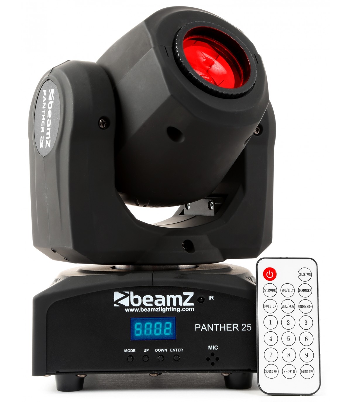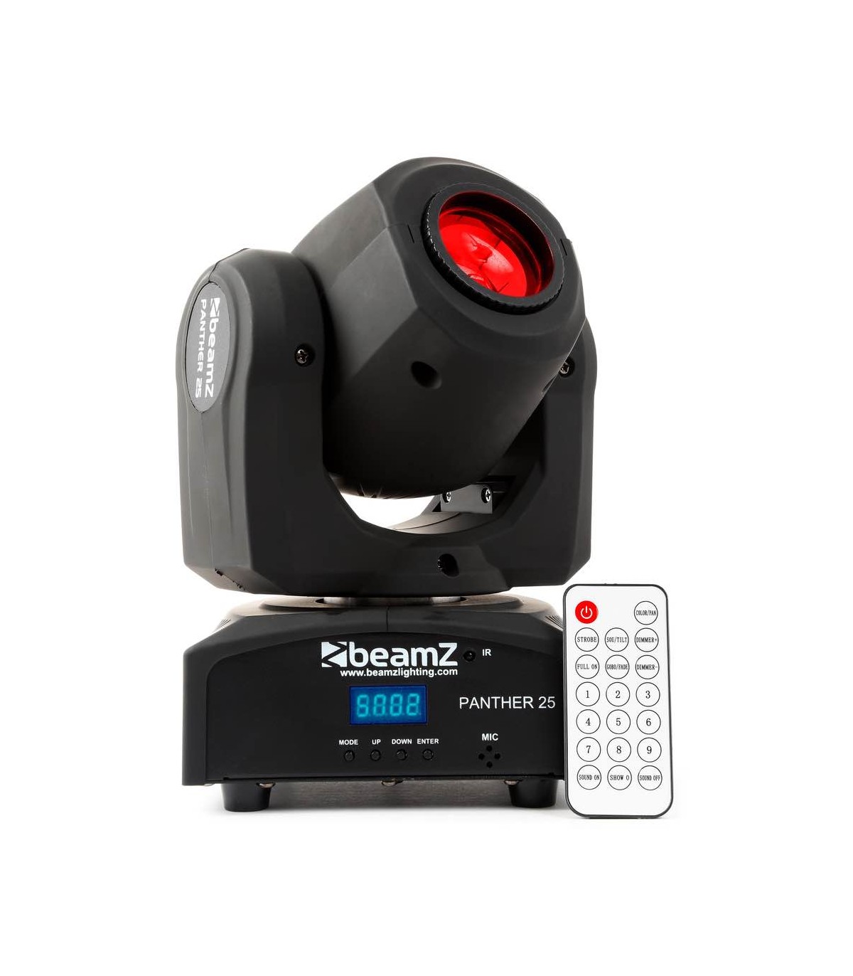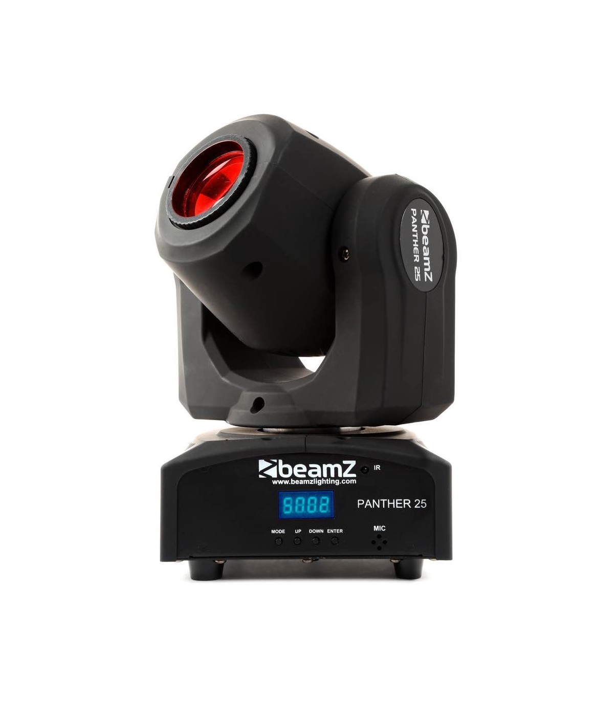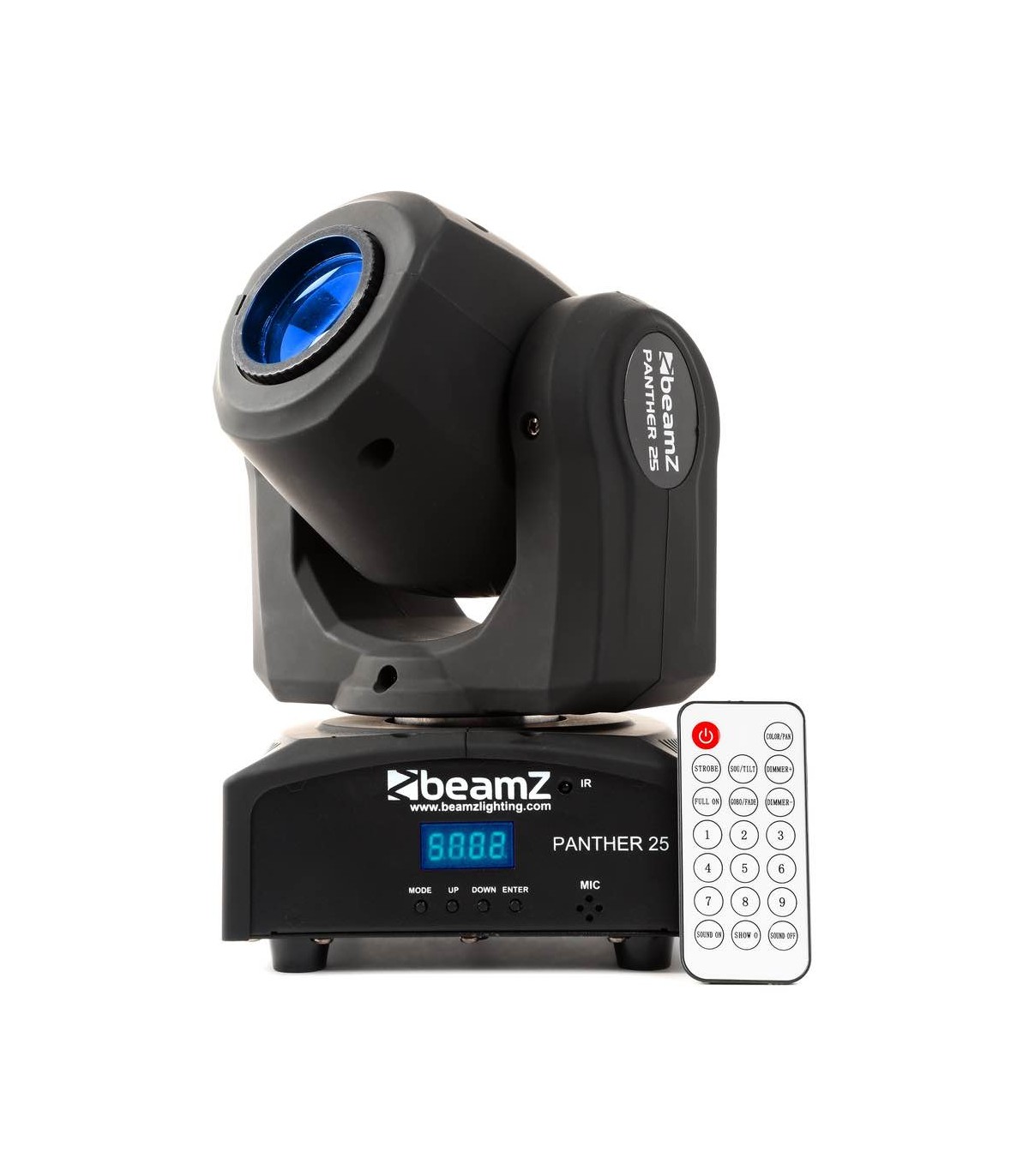 Una testa mobile Panther molto compatta e luminosa. Il LED CREE da 12 W produce un fascio da 12°. La testa mobile è dotata sia di ruota colore che di ruota gobo per il massimo controllo. La ruota gobo ha 7 diversi gobo + aperto e la ruota colore ha 7 colori + bianco. Questa testa mobile Panther funziona in DMX, in modalità stand-alone o con controllo IR. Quando si opera in modalità DMX è possibile scegliere 3 modalità di canali DMX.
