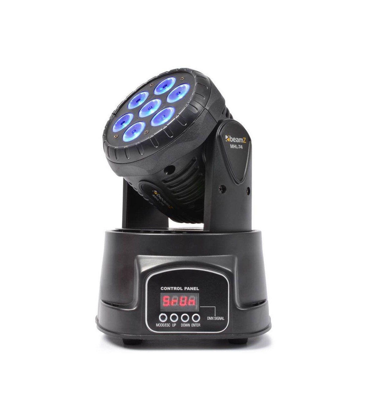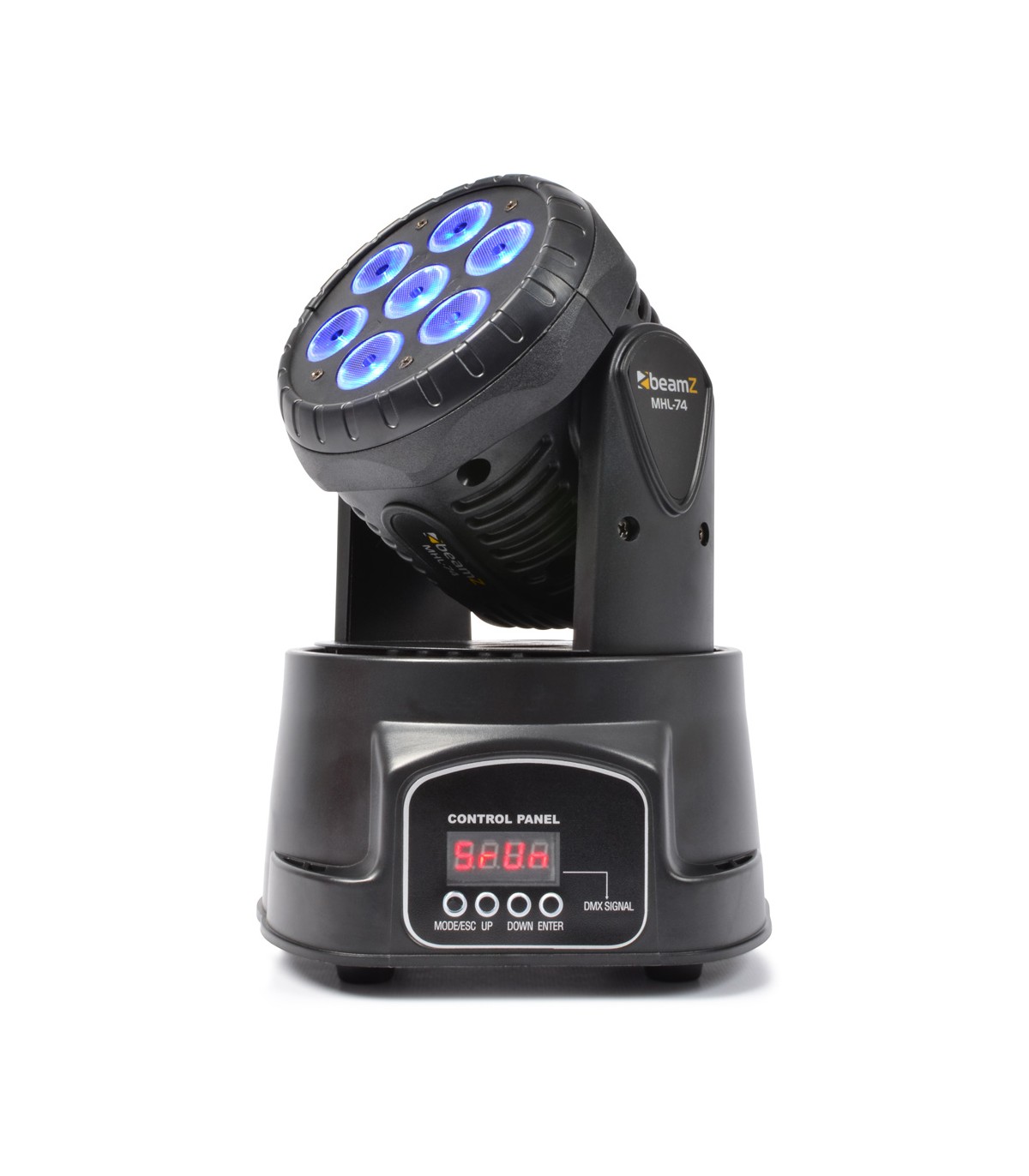 Una testa wash a LED molto compatto per uso professionale in teatri, palcoscenici, concerti, discoteche ecc. Basato su 7x LED 10W 4-in-1 per un'emissione luminosa estremamente elevata che consente di produrre un geniale spettacolo di luci con una miscela di colori colori perfetta. Viene fornito con un angolo del fascio di 15° modalità DMX a 7 e 12 canali, strobo a colori, dimmer elettronico ecc. Morbido ma estremamente veloce movimento di 540° Pan e 180° tilt.