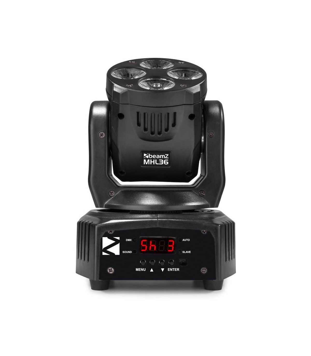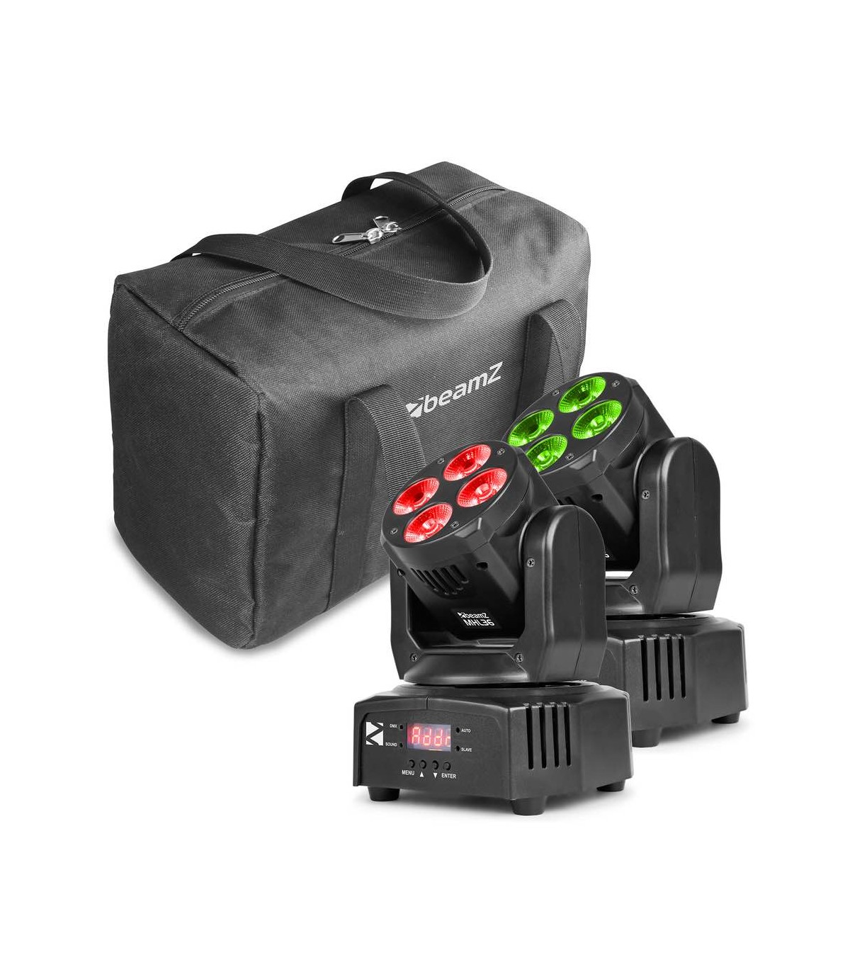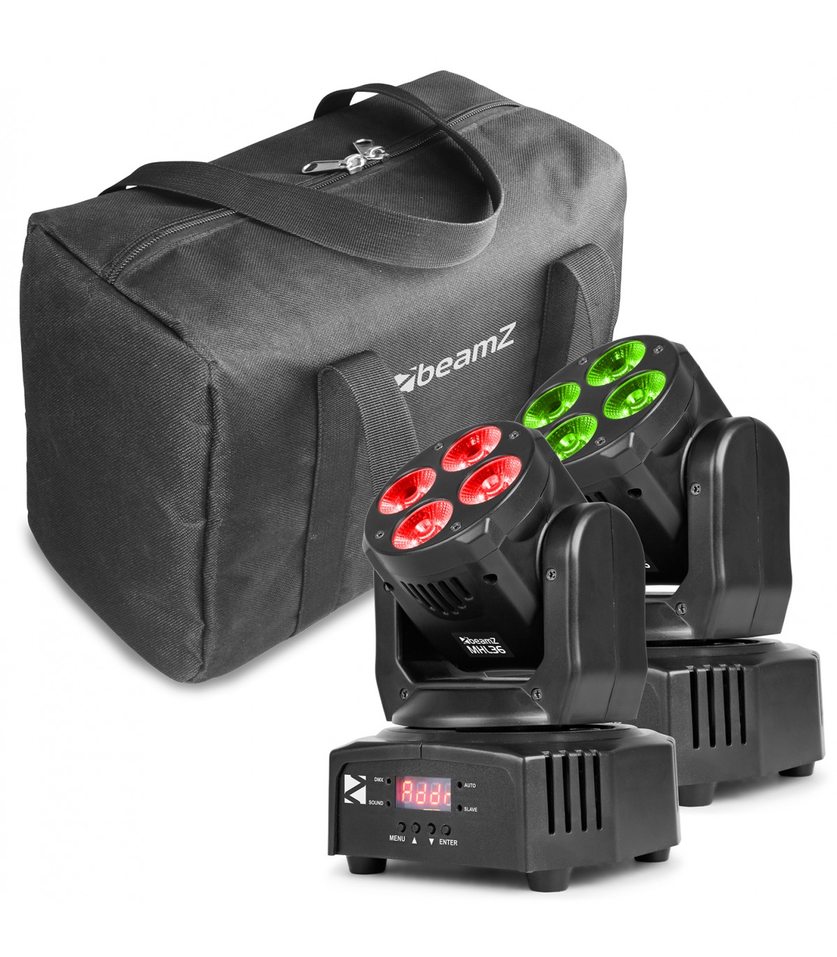 Una testa mobile a LED molto compatta con 4 LED 4 in 1 4x 9W per un'emissione luminosa estremamente elevata per produrre un geniale spettacolo di luci con un mix cromatico perfetto. Viene fornito con un angolo del fascio di 26 °, modalità DMX a 14 e 16 canali, strobe a colori, dimmer elettronico ecc. Movimenti di rotazione 540 ° Pan e 180 ° morbidi ma estremamente rapidi. Questo kit viene consegnato in 2 pezzi in una borsa morbida BeamZ.