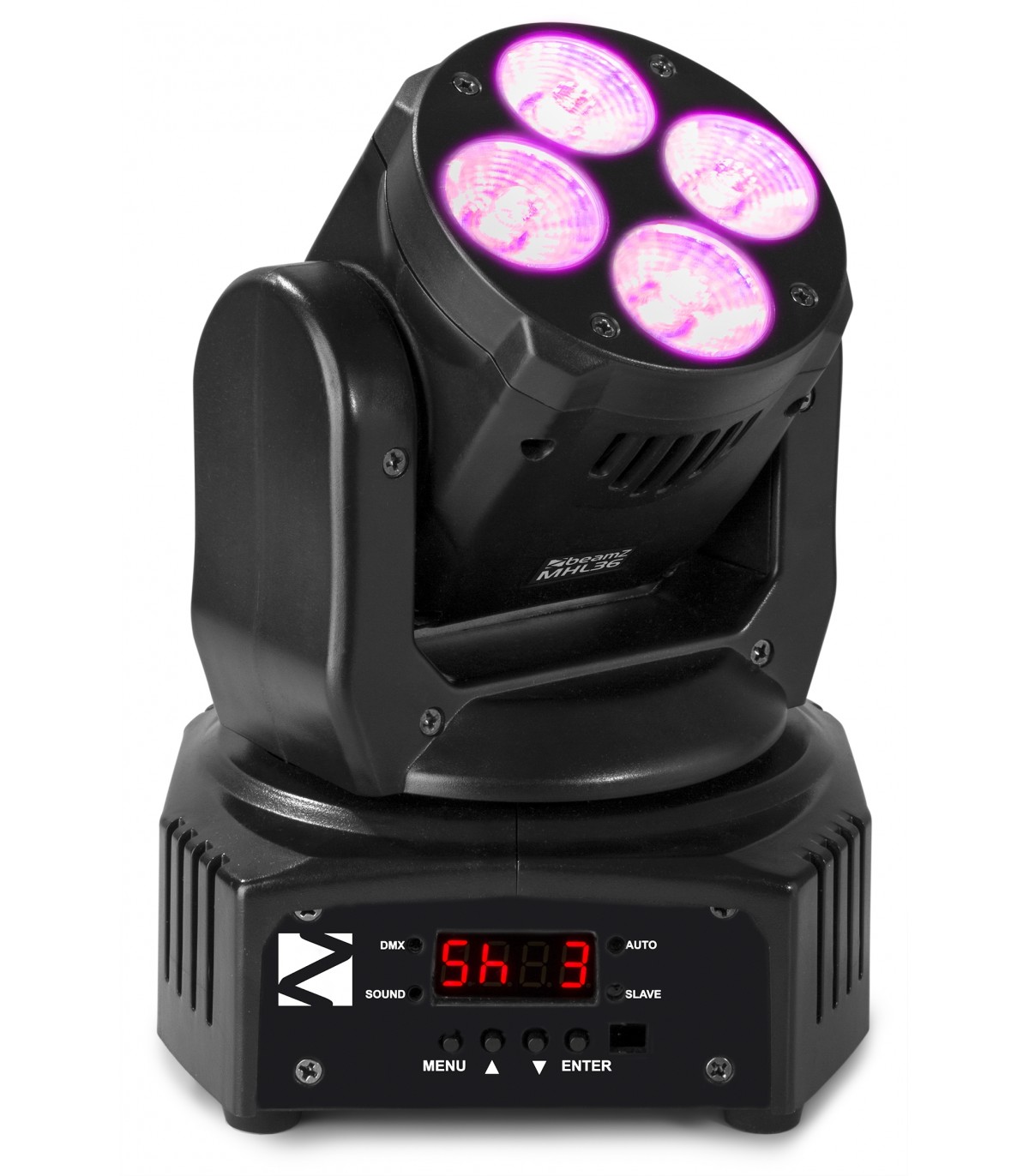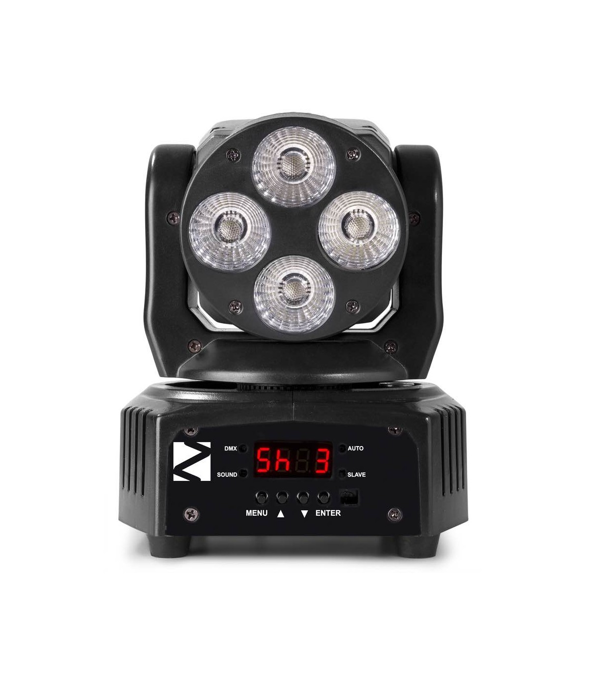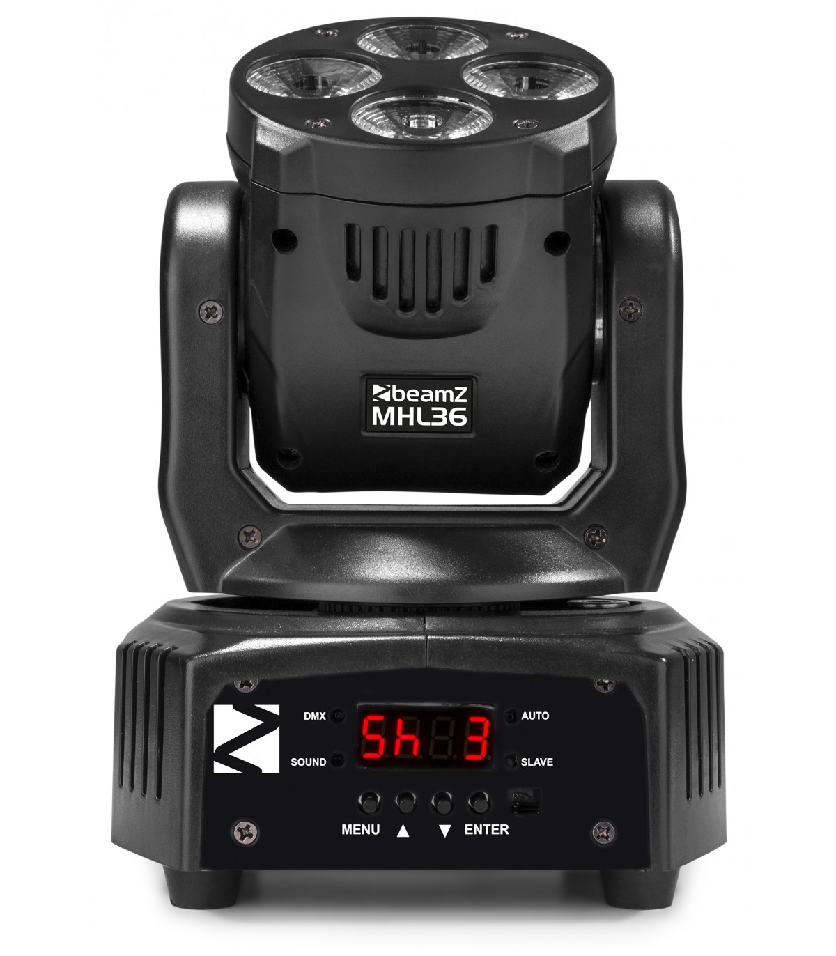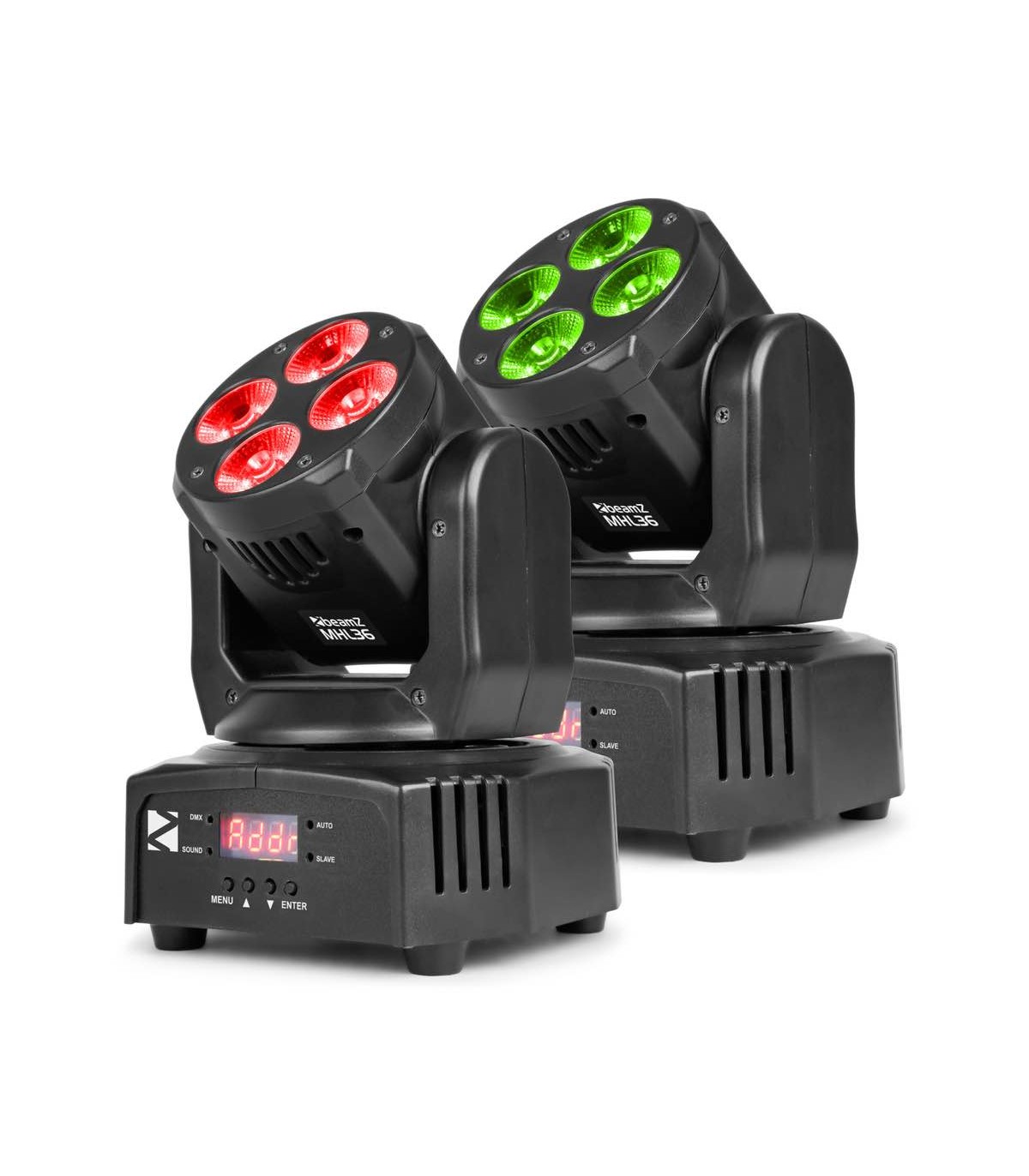 Una testa mobile a LED molto compatta con 4 LED 4 in 1 4x 9W per un'emissione luminosa estremamente elevata per produrre un geniale spettacolo di luci con un mix cromatico perfetto. Viene fornito con un angolo del fascio di 26 °, modalità DMX a 14 e 16 canali, strobe a colori, dimmer elettronico ecc. Movimenti di rotazione 540 ° Pan e 180 ° morbidi ma estremamente rapidi. Questo kit viene consegnato in 2 pezzi in una borsa morbida BeamZ.