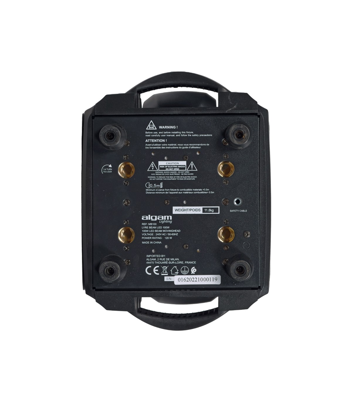 L'Algam Lighting MB100 è un BEAM testa mobile con meccanismo a lira dotato di led 100W. La testa mobile Beam MB100 LED rappresenta la soluzione di illuminazione ideale per tutti i vostri service e installazioni. Algam Lighting MB100 è dotato di una potente sorgente luminosa LED bianca da 100 W, associata a due ruote gobo, una fissa con 16 motivi e l'altra motorizzata con la sua tavolozza di 10 colori. I suoi prismi dalle ampie possibilità garantiscono molteplici effetti luminosi, uno più accattivante dell'altro. Sviluppato per i professionisti dell'illuminazione, il proiettore controllato MB100 è compatibile con molteplici applicazioni fisse o mobili. Particolare attenzione è stata posta alla silenziosità del motore, che garantisce libertà di movimenti panning fino a 540° e tilt fino a 270, con sorprendente reattività e velocità. Controllabile in DMX (16 o 20 canali) o configurabile tramite il pannello di controllo integrato, la testa mobile MB100 funziona anche in modalità automatica e al ritmo della musica. Questo proiettore professionale è dotato di un alimentatore con ingresso e uscita con connettore Powercon per dispositivi in daisy-chain e di 2 basi OMEGA per installazioni sicure.