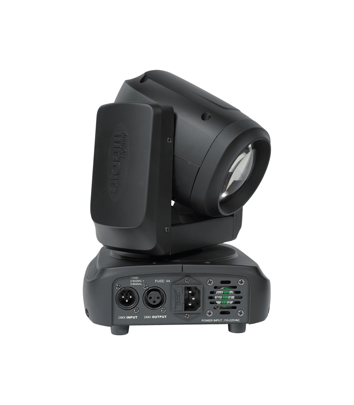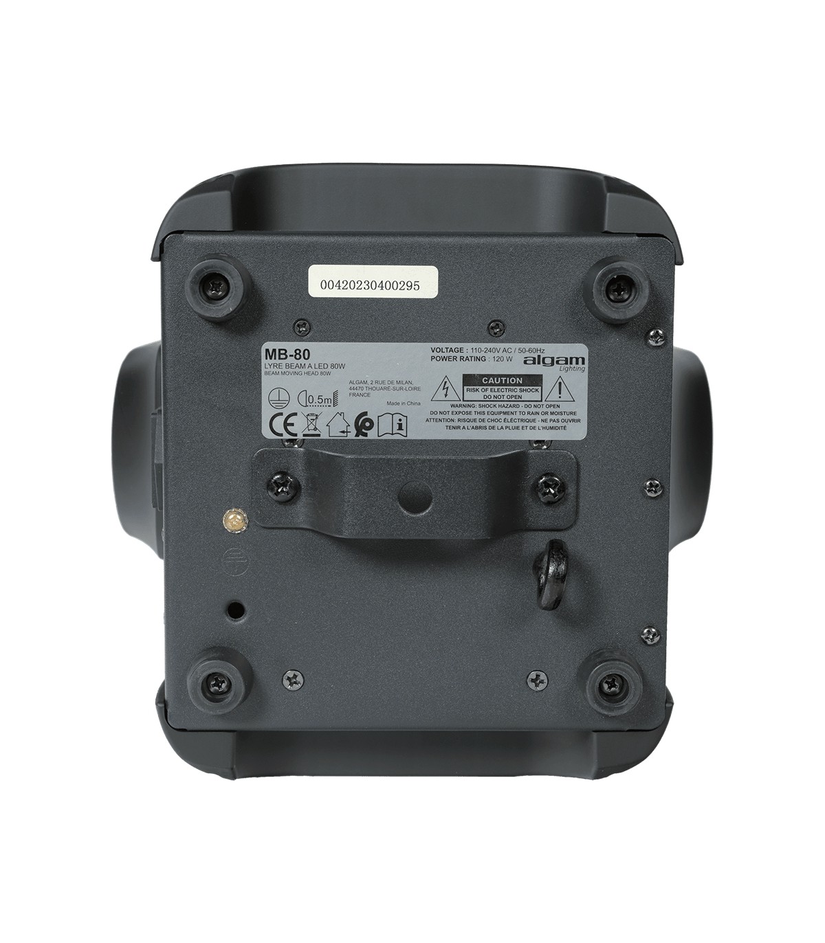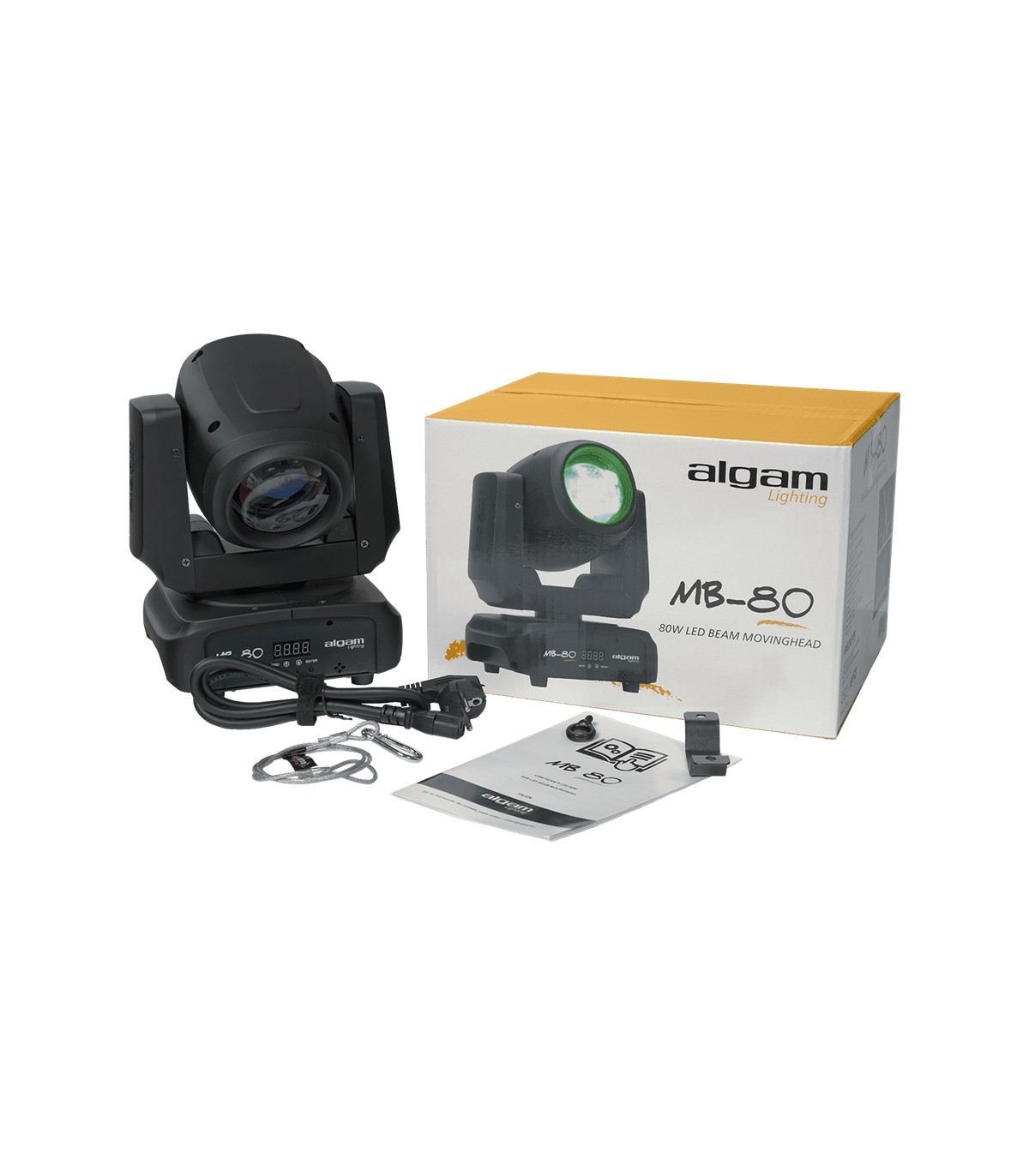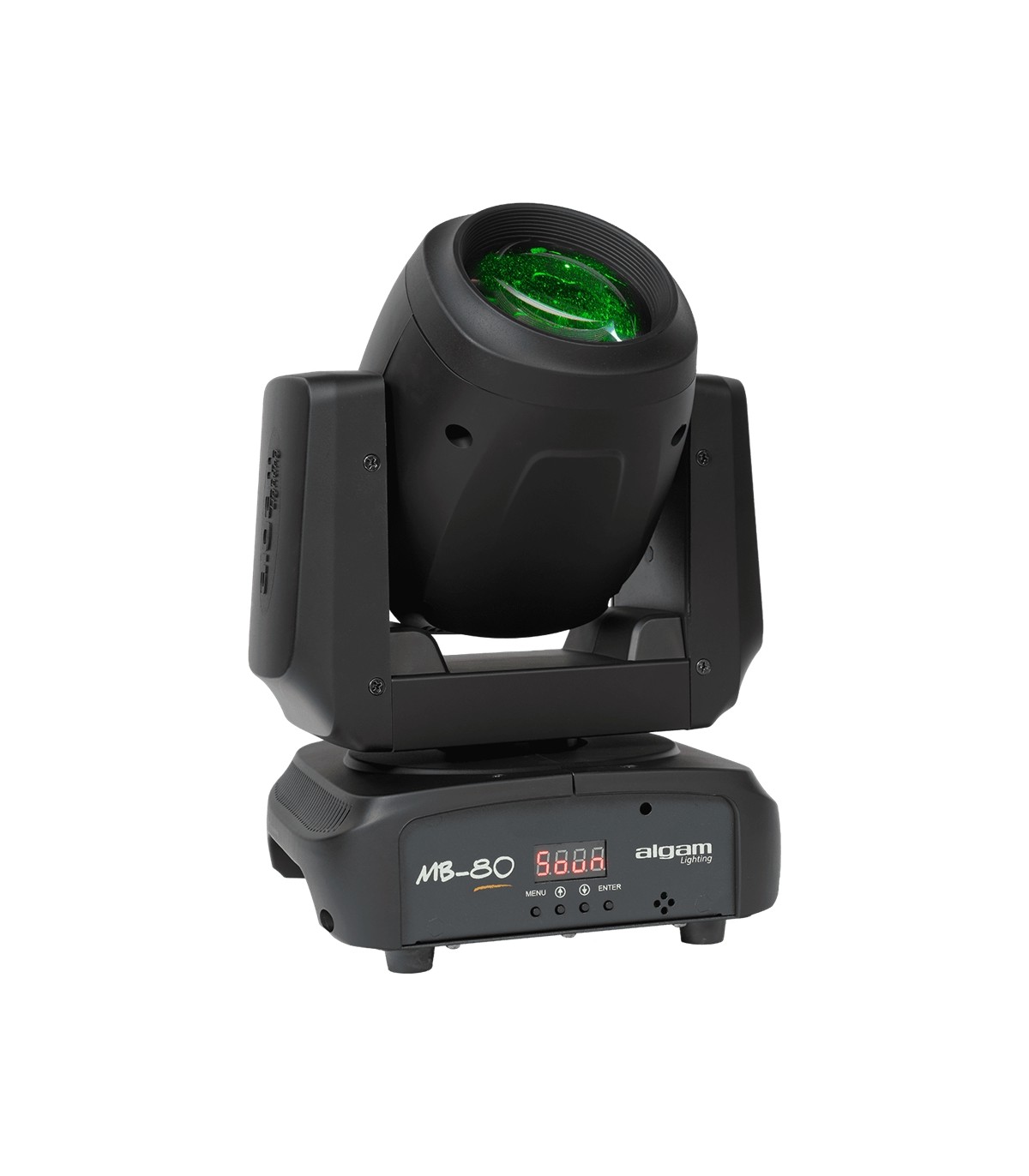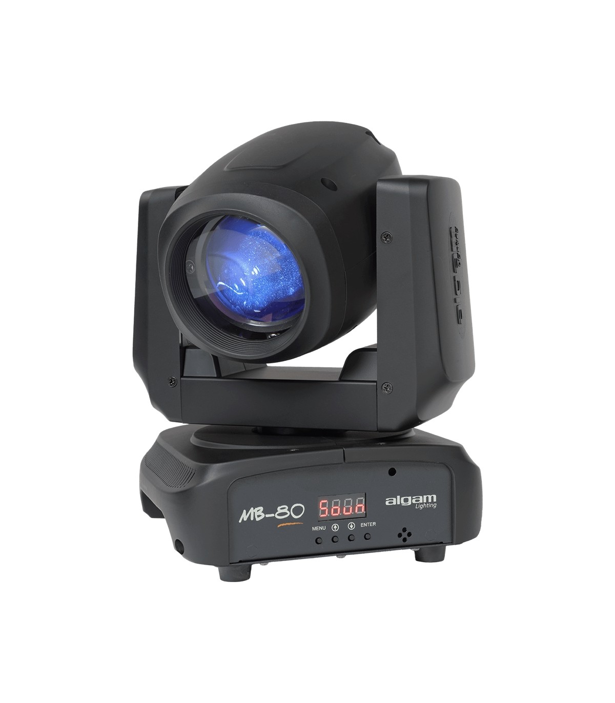 L'MB80 di Algam Lighting è un proiettore BEAM con un potente LED bianco da 80W. Dotato di una ruota di 8 gobo con la sua tavolozza di 8 colori e un doppio prisma rotante di 6 o 12 facce è estremamente efficiente e a dispetto delle sue dimensioni compatte proietta fasci di luce e motivi l'uno più accattivante dell'altro. Sviluppato da un team di appassionati, il proiettore Beam MB80 è compatibile con un'ampia gamma di applicazioni fisse o mobili. La sua motorizzazione silenziosa garantisce movimenti di panoramica fluidi fino a 540° e di inclinazione fino a 230° con un sorprendente dinamismo. Controllabile via DMX attraverso 11 o 13 canali per possibilità estese, o configurabile tramite il pannello di controllo integrato, questa testa mobile funziona anche in modalità automatica, controllata dalla musica o master/slave. Con un peso di soli 3 kg, l'MB80 è dotato di un sistema di piastra di base rimovibile per installazioni sicure a testa in giù.