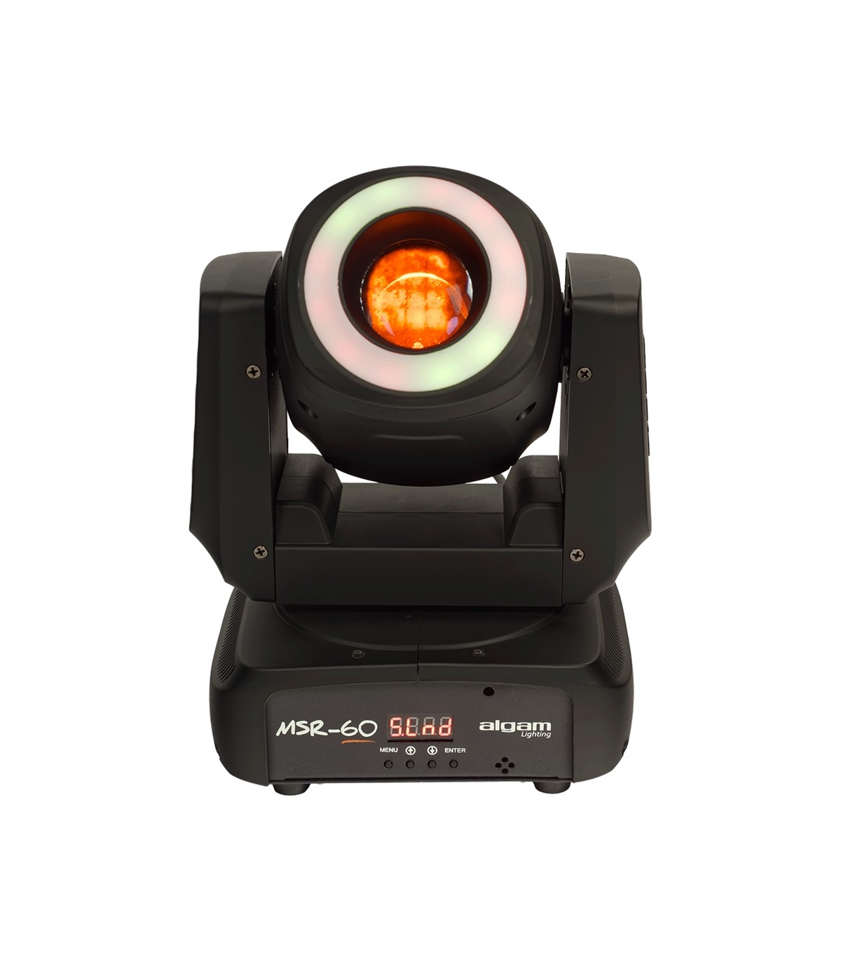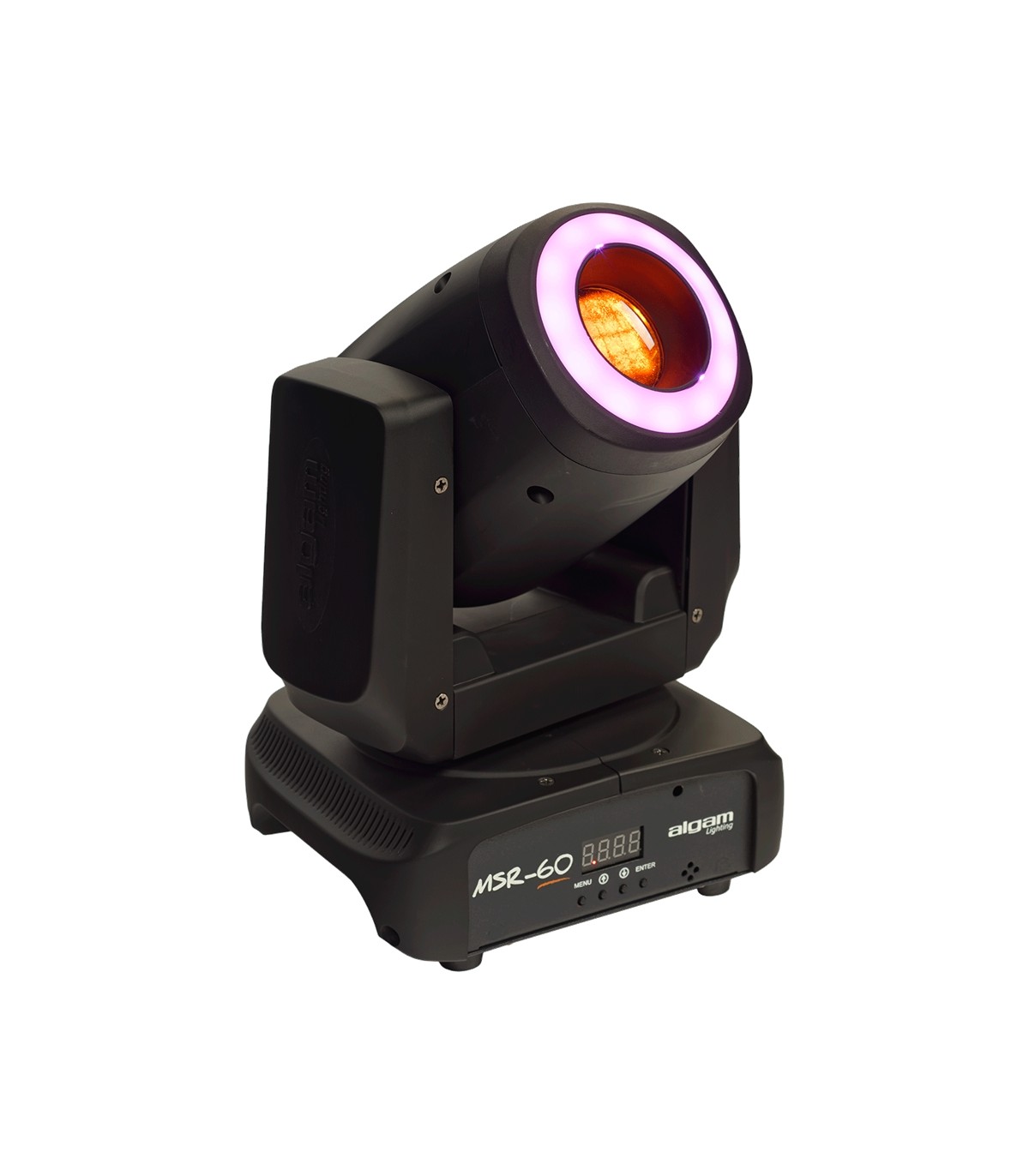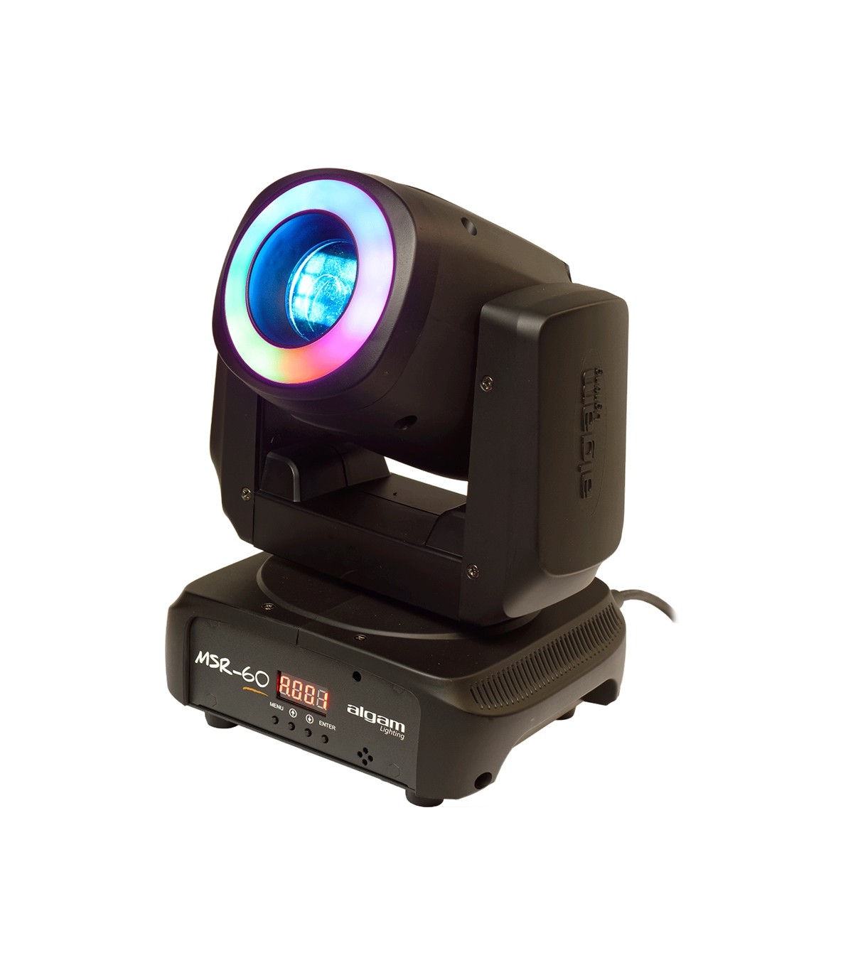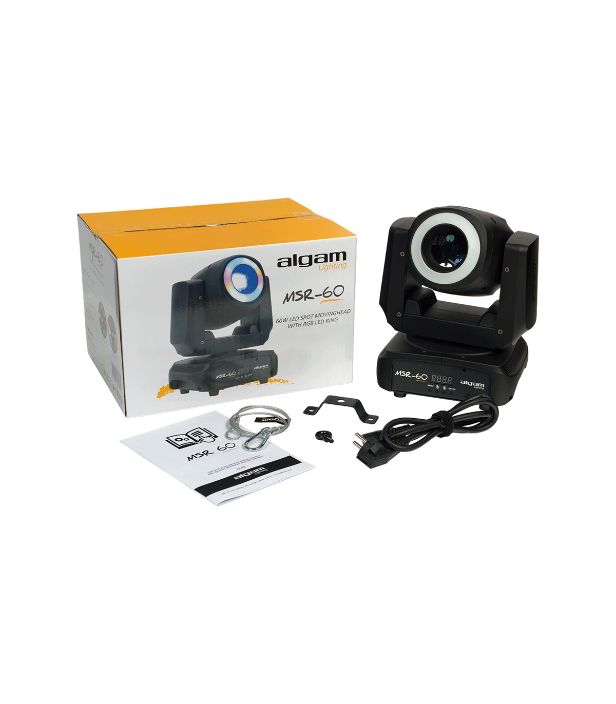 Con il suo design compatto ed elegante sormontato da un accattivante anello RGB, la testa mobile spot MS60 di Algam Lighting proietta un fascio formidabile per la sua categoria grazie al LED bianco da 60 W. La sua ruota da 8 gobo abbinata a una ruota da 8 colori e la messa a fuoco motorizzata coprono un'ampia gamma di effetti colorati. Dotato di una motorizzazione discreta che non ha nulla da invidiare ai modelli professionali, questo proiettore esegue una panoramica rapida e precisa fino a 540° e si inclina fino a 180°. La testa mobile può essere controllata a distanza tramite il suo ingresso/uscita DMX e impostata in modalità automatica o controllata dalla musica con il pannello di controllo integrato. Con un peso di soli 3 kg, l'MSR60 è dotato di un sistema di piastra di base rimovibile per installazioni sicure a testa in giù.