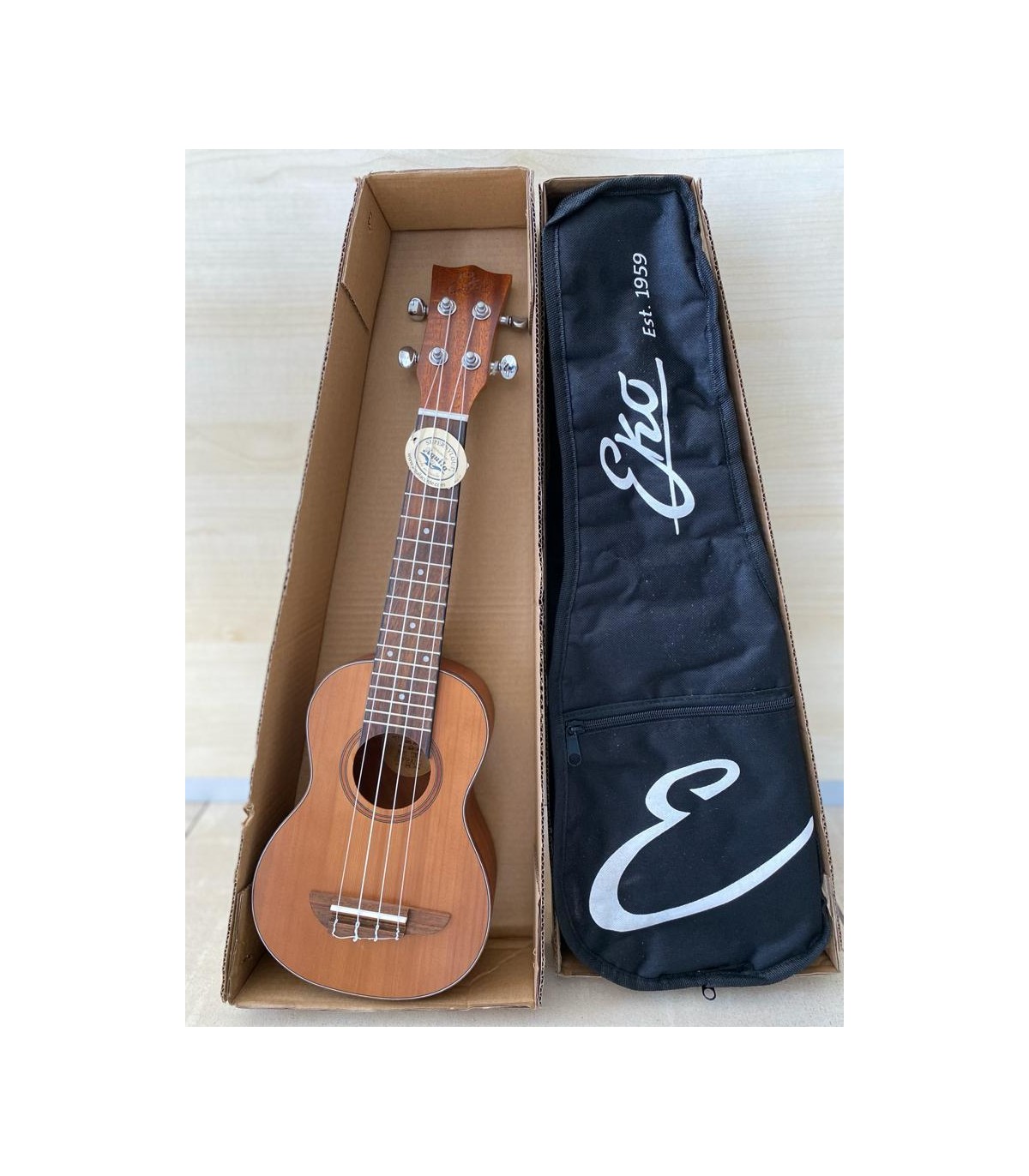 L' Ukulele Soprano della sere Evo è caratterizzato dalla presenza del top in Cedro, fasce e fondo in Mogano e tastiera in South American Roupanà. Disponibile nella finitura Natural. Cercando di ampliare al massimo l'offerta di strumenti musicali, non poteva mancare nel catalogo Eko una sezione dedicata all'Ukulele, strumento comunemente associato alle Hawaii che fornisce all'ascoltatore una sensazione di relax e benessere. La serie EVO prende il nome dalla contrazione della parola EVOluzione, e porta con sé il codice "genetico" della serie MIA, le chitarre Eko che hanno riscosso il maggior successo negli ultimi anni, e che hanno cambiato la percezione del marchio EKO nel mondo della chitarra, trasformandolo da marchio considerato entry-level a marchio produttore di chitarre per artisti e professionisti. La Serie EVO rappresenta un ulteriore passo avanti, offrendo strumenti le cui caratteristiche si concentrano sulla stretta relazione che intercorre tra il musicista e il suo strumento, Le finiture a poro aperto creano una piacevole sensazione di contatto con il legno, generando un felling positivo fra lo strumento ed il musicista.